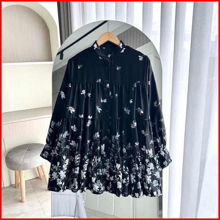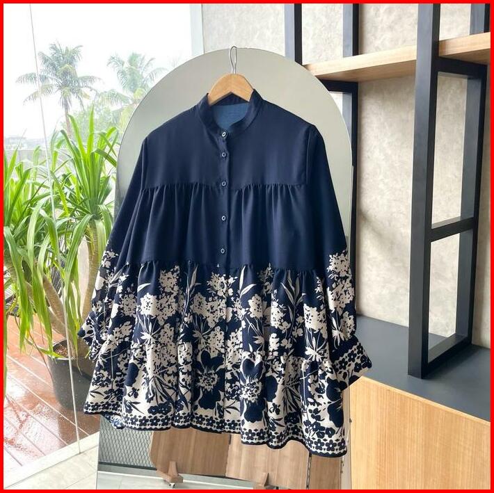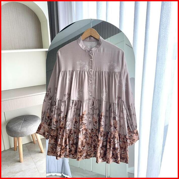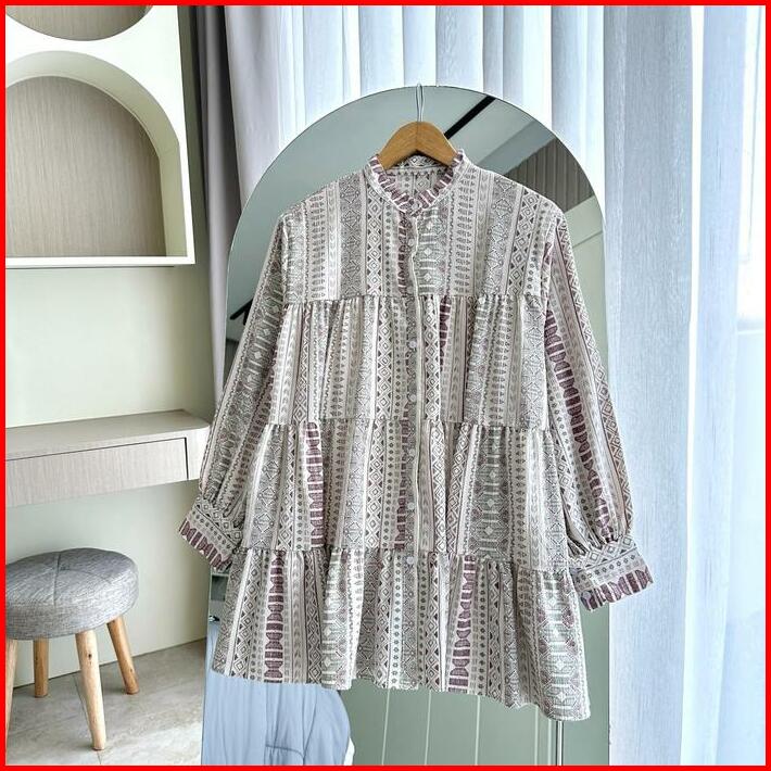 By Hana 40 Kemeja Rempel Motif Kemeja Rayon Kemeja Crinkle Variasi Wanita Panjang Atasan Kancing