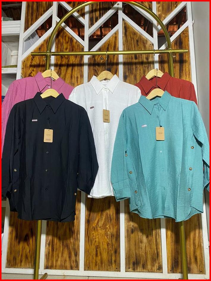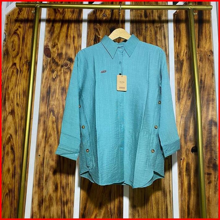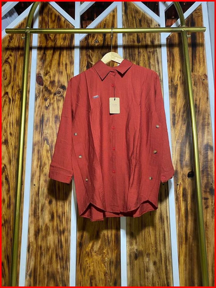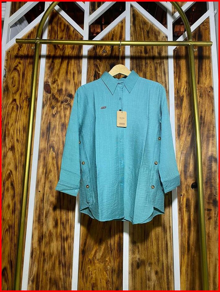Atasan Blouse Aurel Ld 115 Wanita Panjang Casual Bahan Polo Linen Premium Variasi Kancing Samping Kemeja Viral