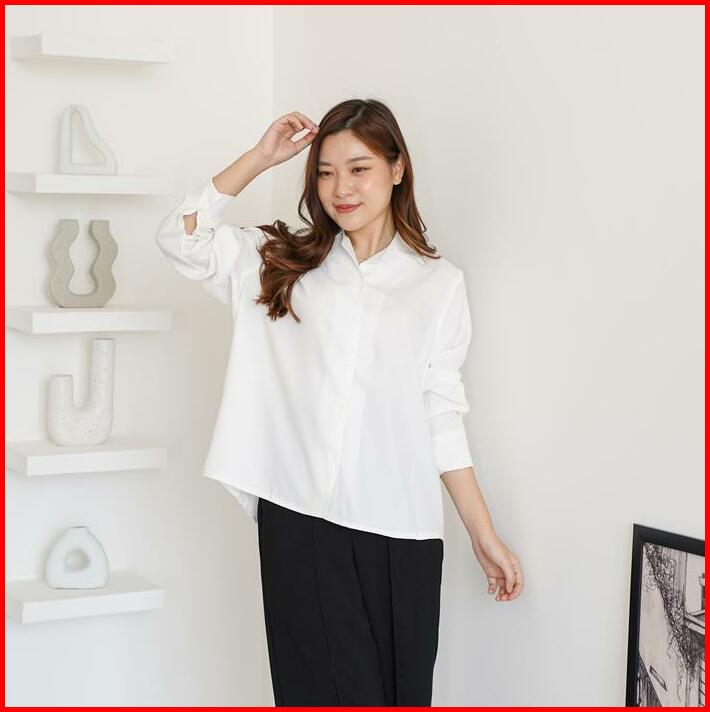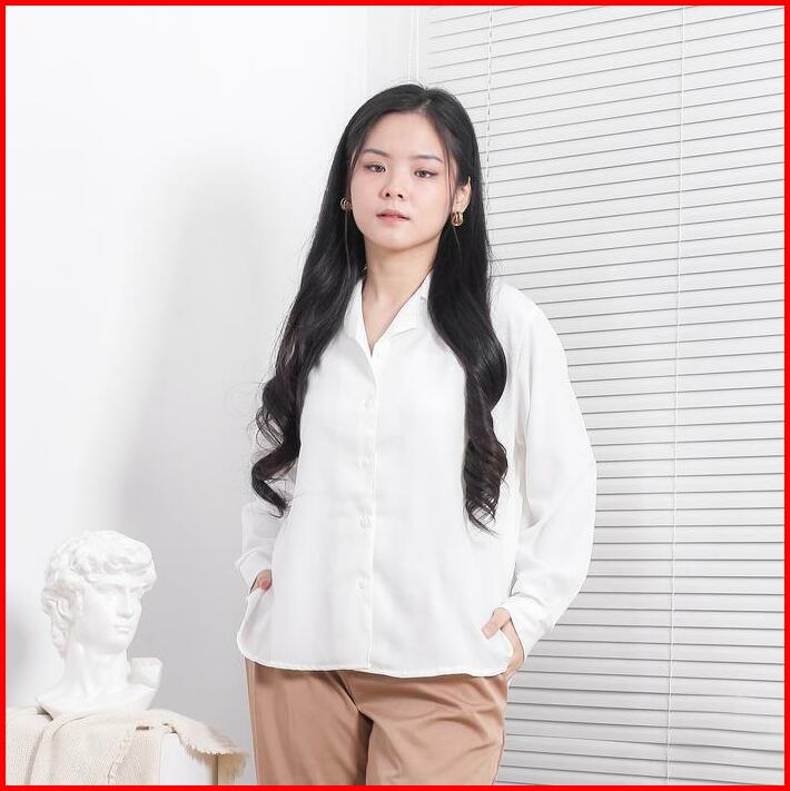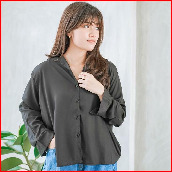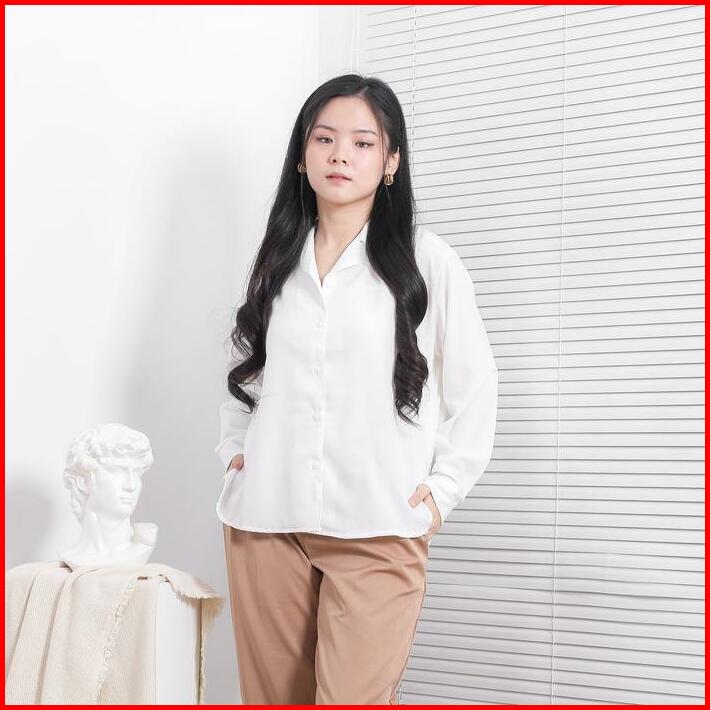 Severli Cella Shirt Kemeja Kerja Wanita Lengan Panjang Kemeja Casual Basic Atasan Baju Wanita Kekinian Top Cewek Katun
