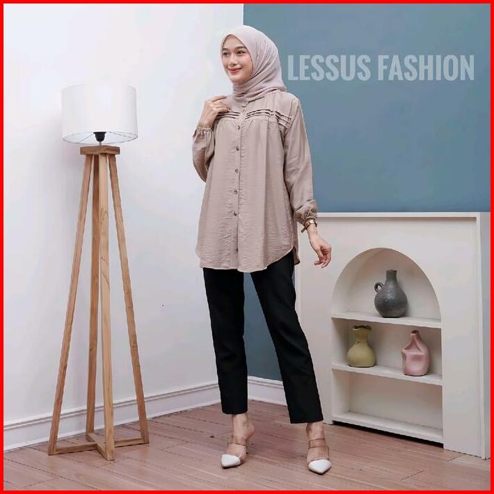 Luna Blouse Kemeja Polos Polo Linen Tangan Karet Kemeja Atasan Wanita Jumbo Polos Kekinian Baju Santai