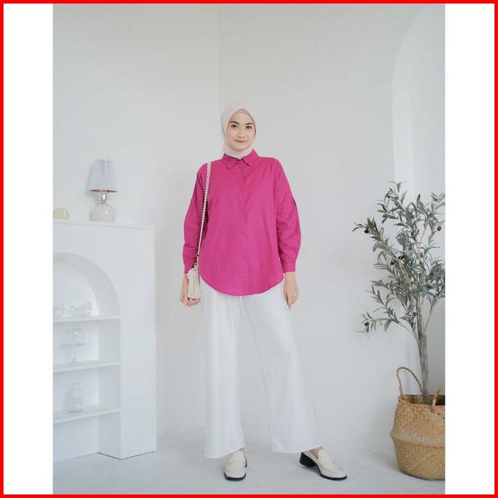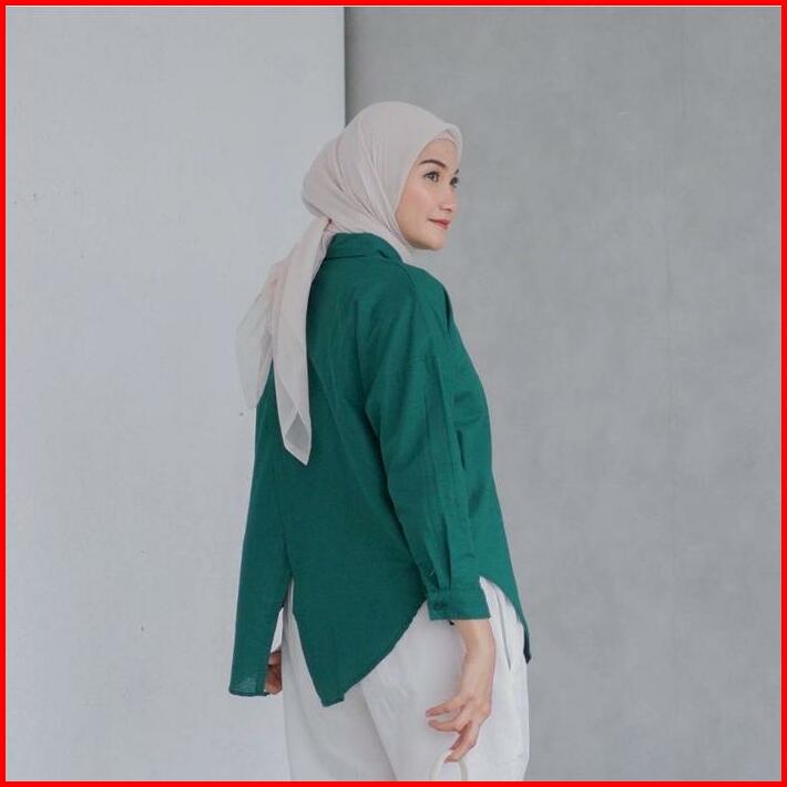 Linen Oversize Nelka Setrip Baju Fit Panjang Wanita Atasan Casual Dewasa Muslim Remaja Kemeja Viral