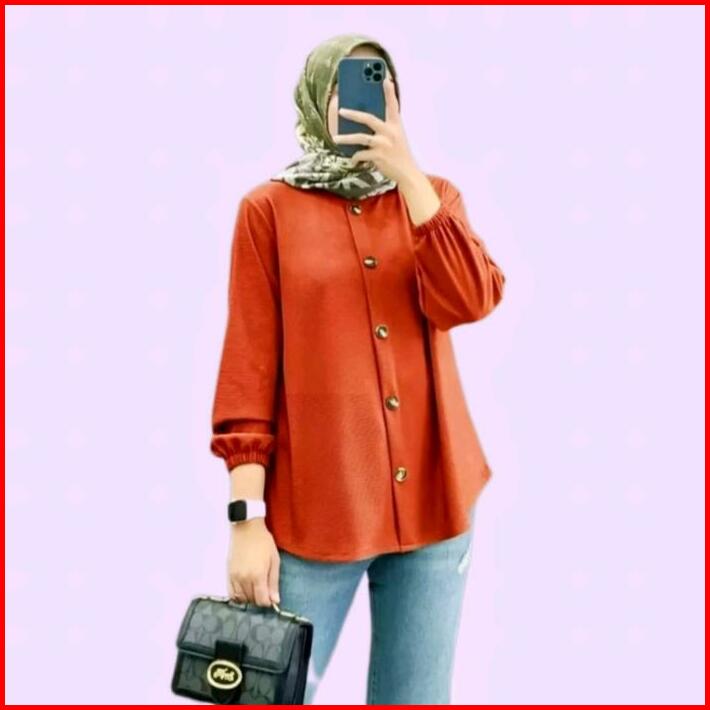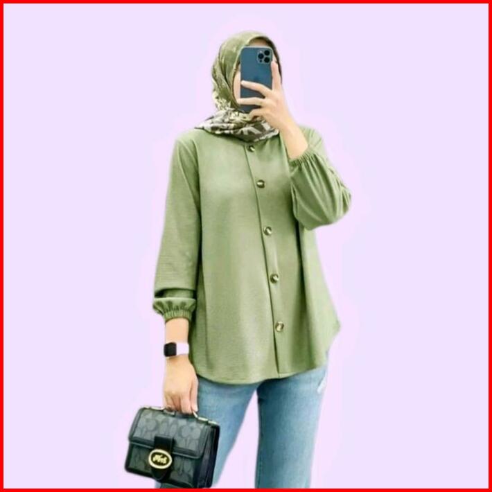 Naila Klamby Baju Wanita Muslim Kemeja Polos Atasan Lengan Karet Baju Wanita Kerja Kantor Blouse Nyaman Crinkle Airflow