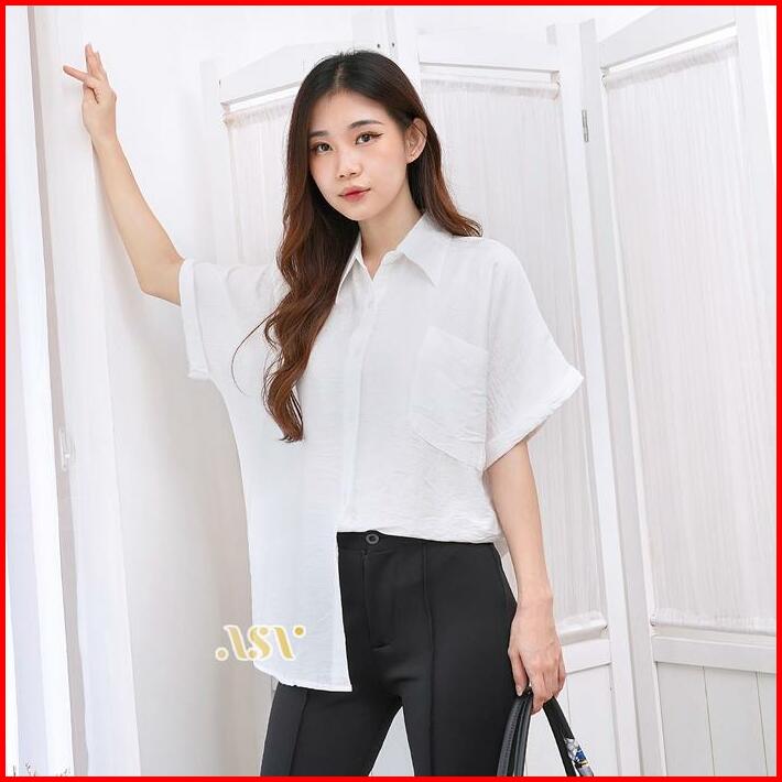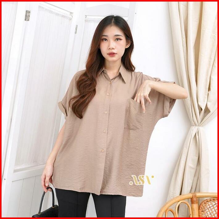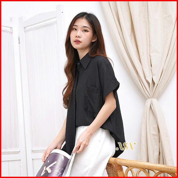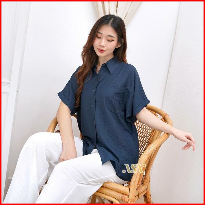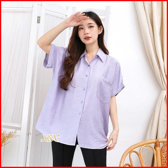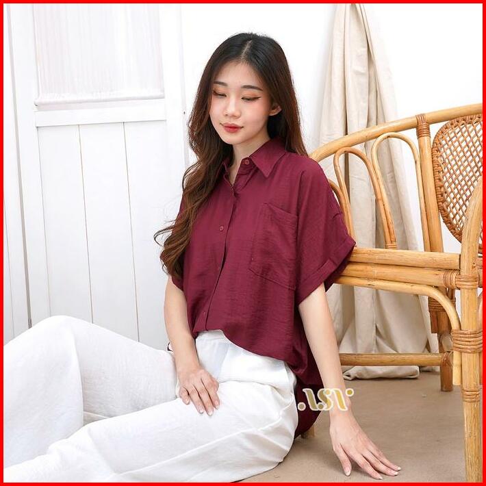 Kimi Xl Xxl Xxxl 5l Ld 110 120 130 140 Kemeja Polo-linen Crinkle Oversize Atasan Wanita Bigsize Lengan Pendek Size Jumbo