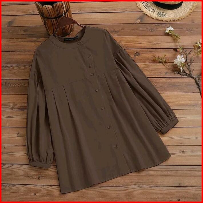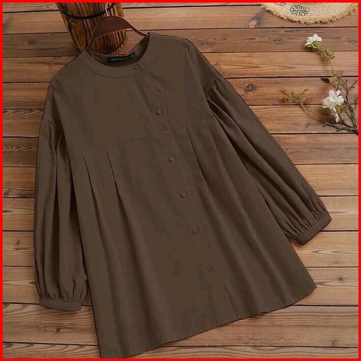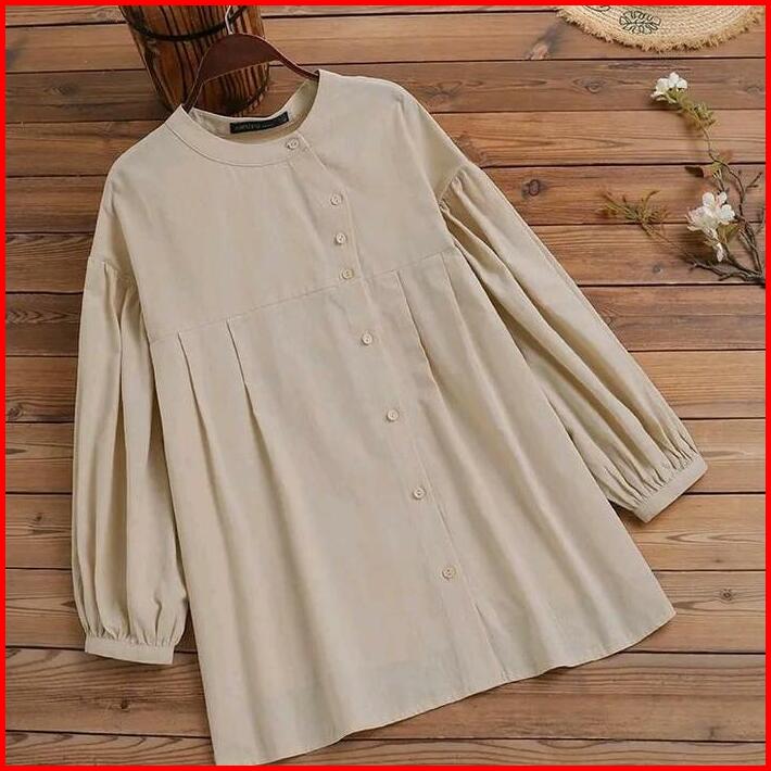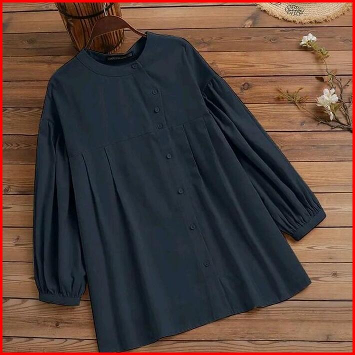 Blues Atasan Kemeja S M L Xl Xxl Xxxl 5l Baju Linen Kancing Santai Kerja Lembut Wanita Panjang Oversize Basic Hitam Casu