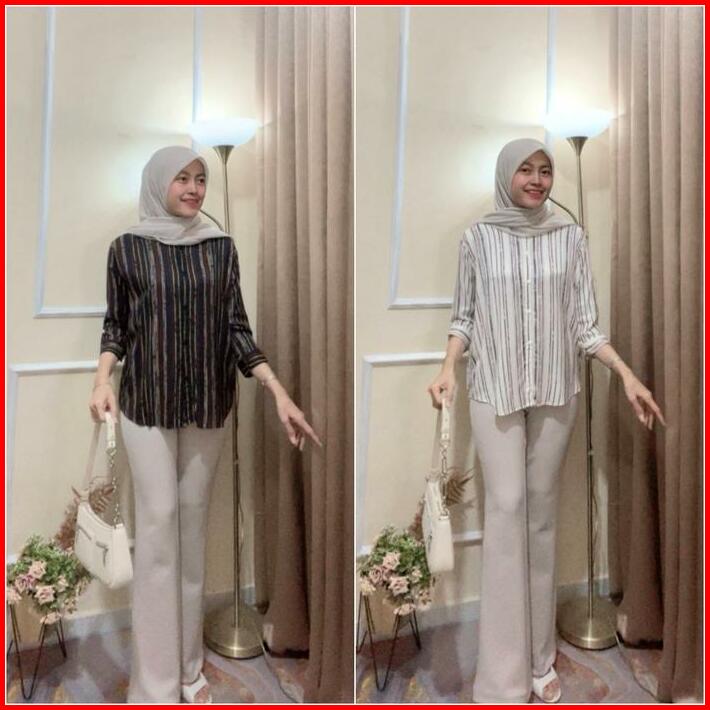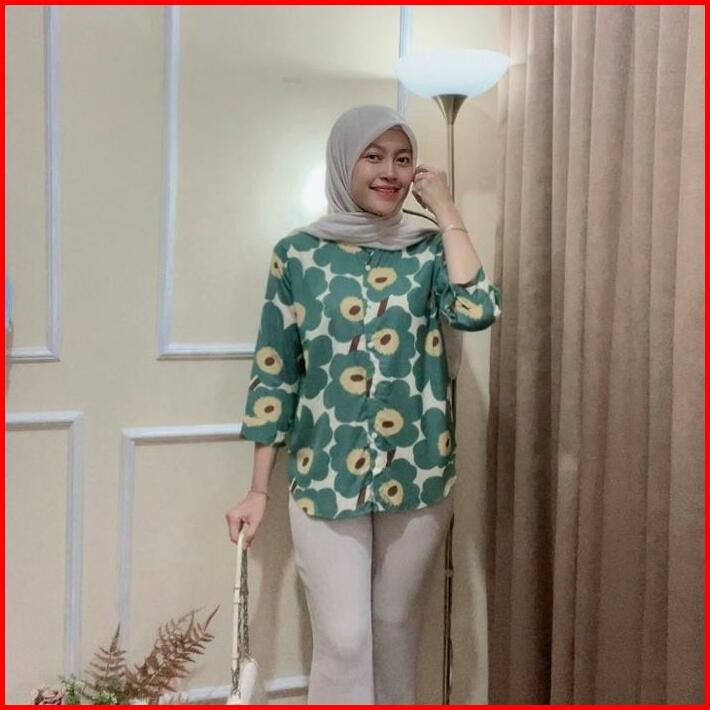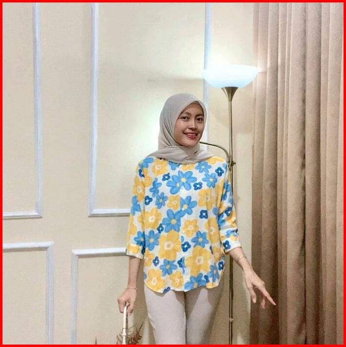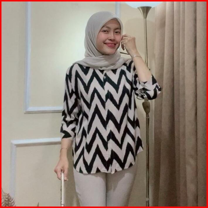 Kemeja Wanita Rayon Motif Lengan Panjang Jumbo Ld120 Daily Top Blouse Viral Terlaris 2024