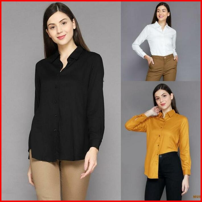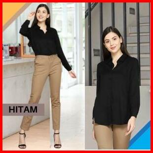 Kemeja Wanita Katun Rayon Twill Putih Hitam Casual Mewah Variasi