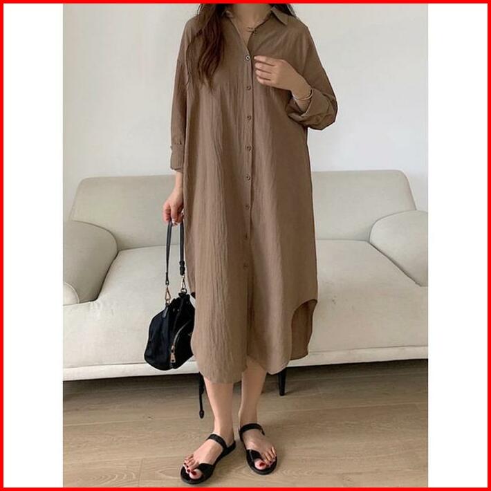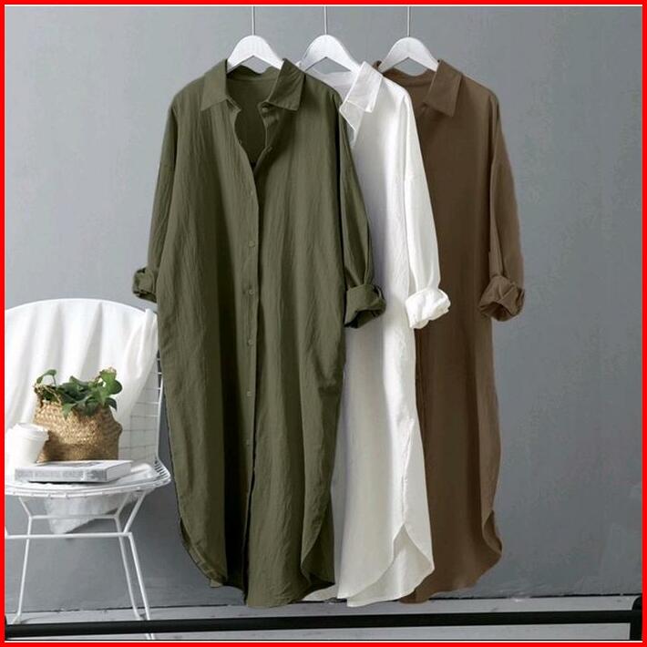 Kemeja Tunik Jumbo Crinkel Airflow Premium Terbaru Polos Oversize Wanita Panjang
