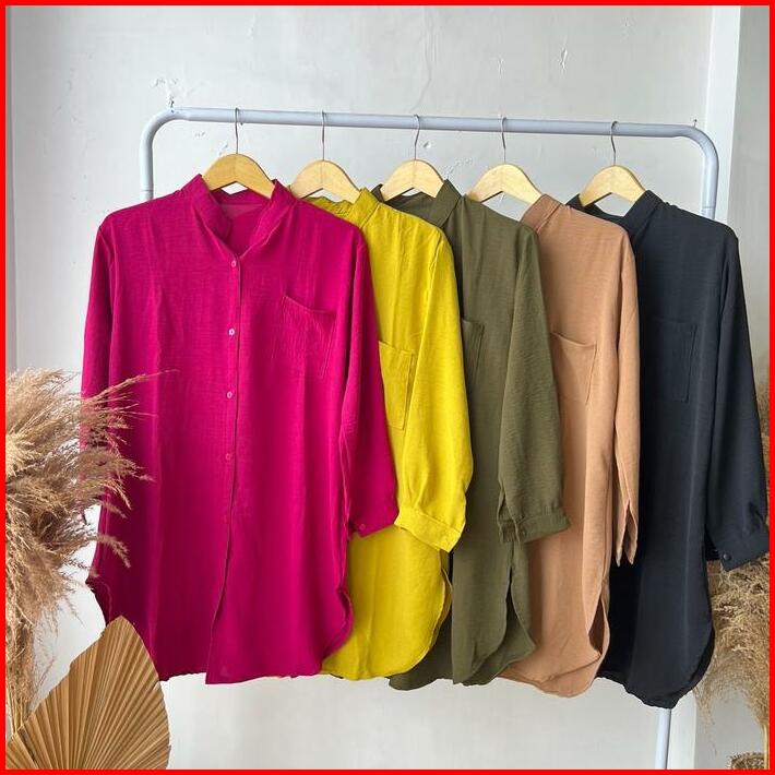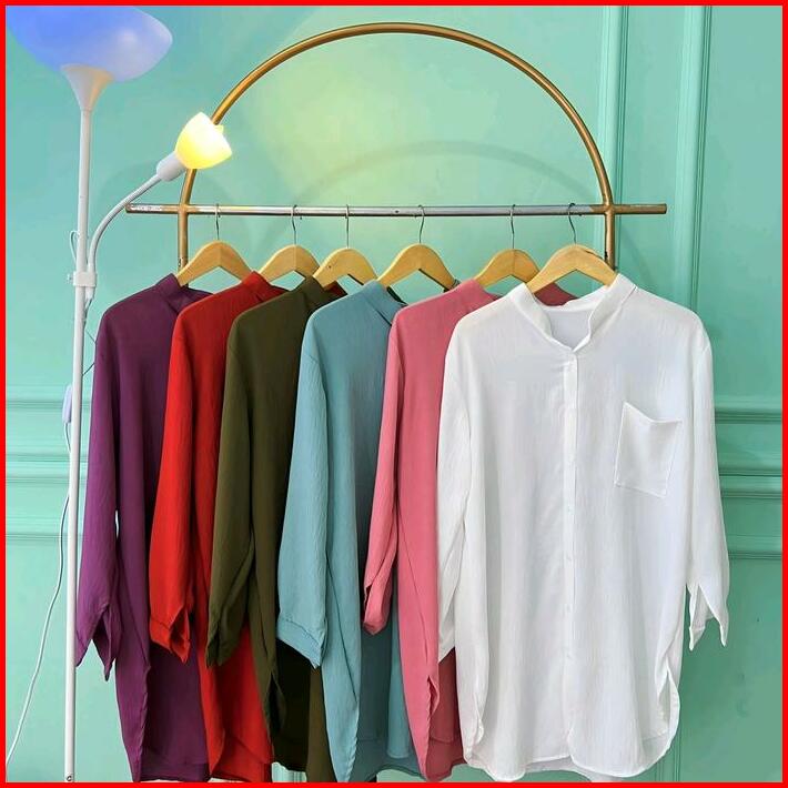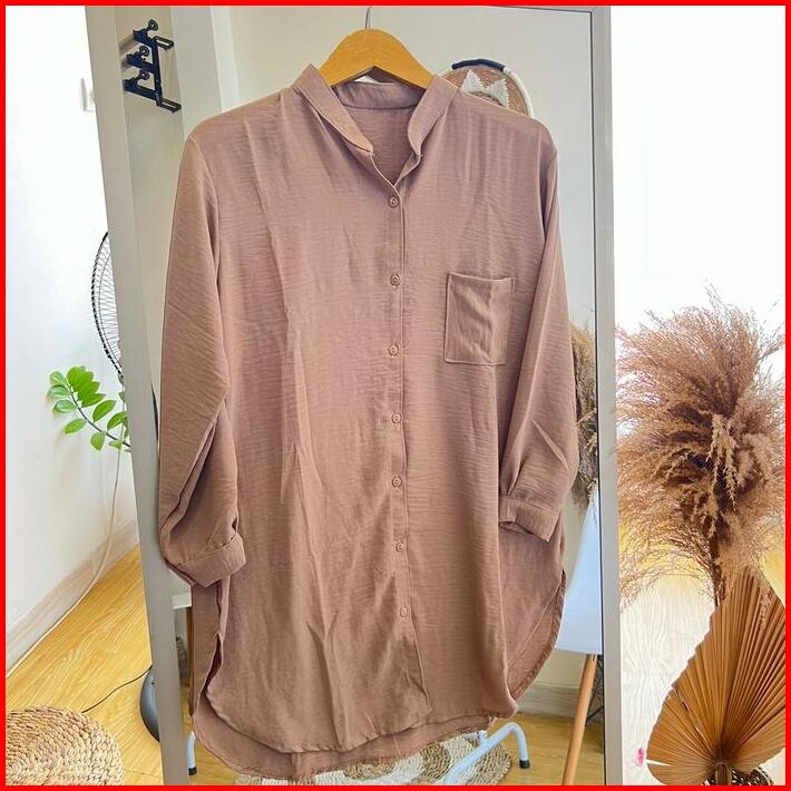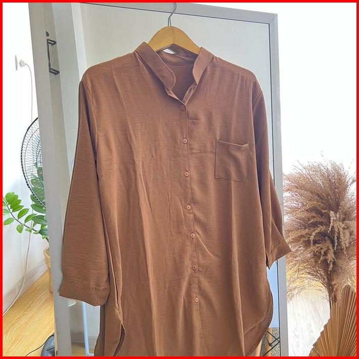 Tunik Kemeja Polos Crinkle Airflow Ld120 Wanita Oversize Nyaman Elegant Brown