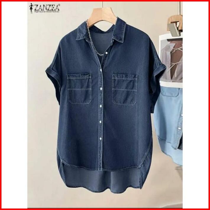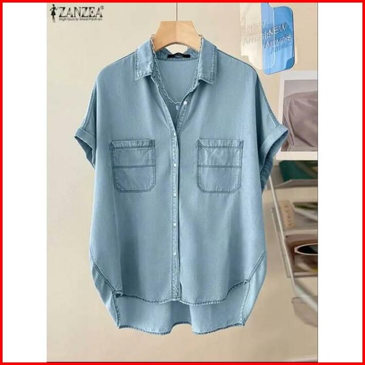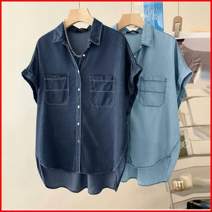 Denim Shirt Kemeja Wanita Lengan Pendek Jeans Ready Dua Warna