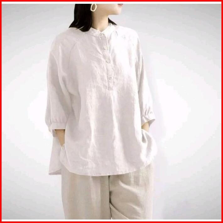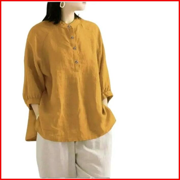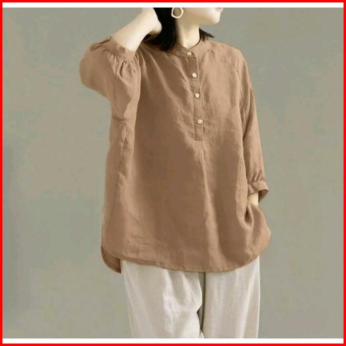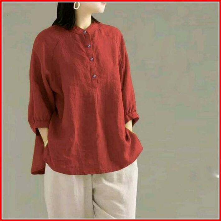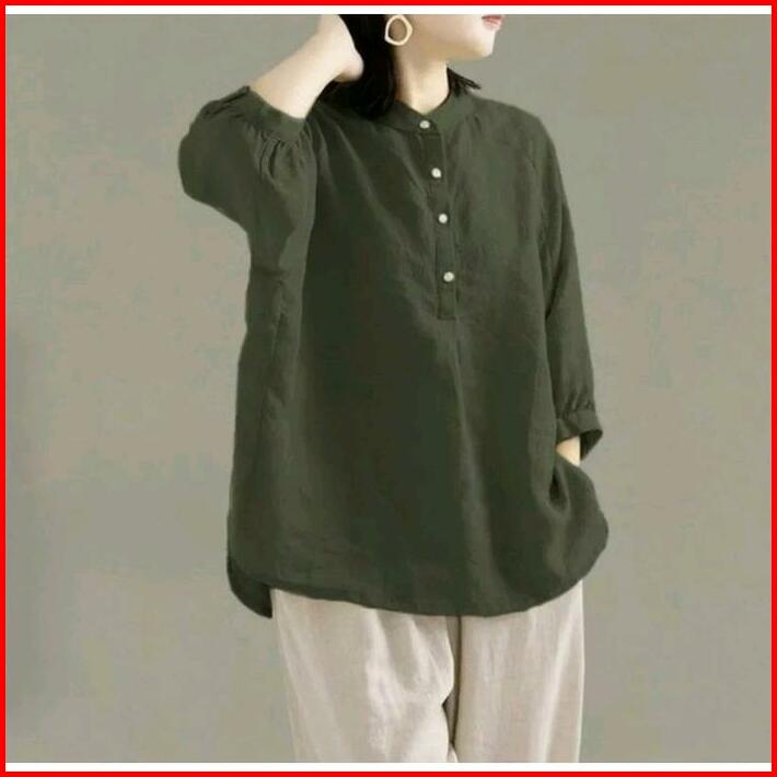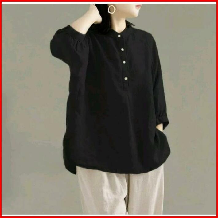 Bibi Kemeja Kerah Shanghai Kemeja Polos Wanita Atasan Panjang