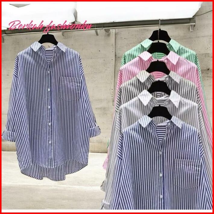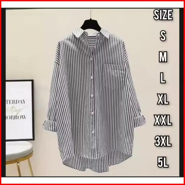 Kemeja Salur Wanita Terbaru Kekinian M L Xl Xxl 3xl Baju Viral Atasan Oversize Katun Casual Dewasa Panjang
