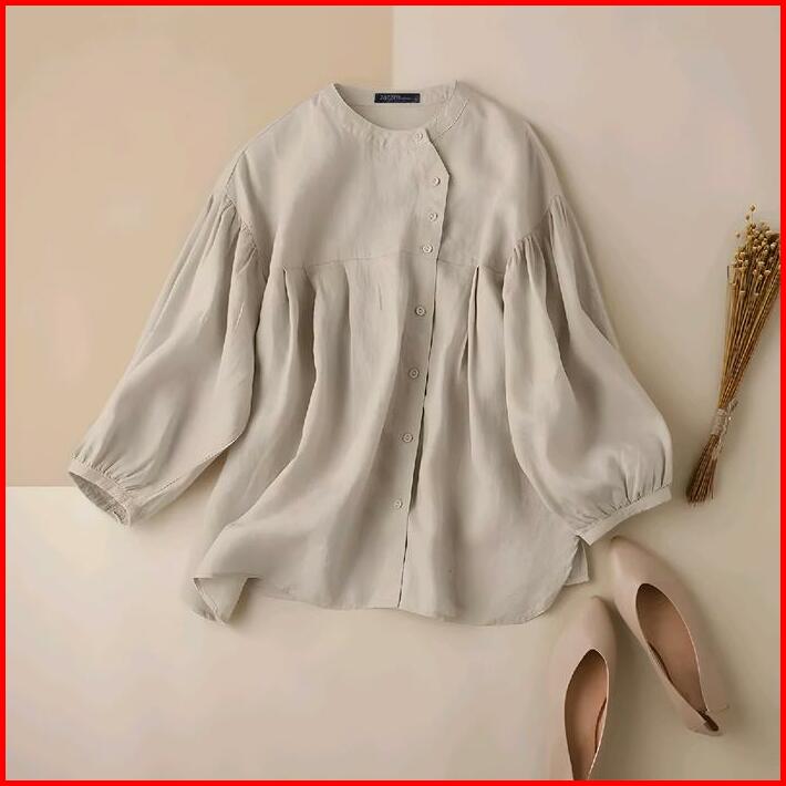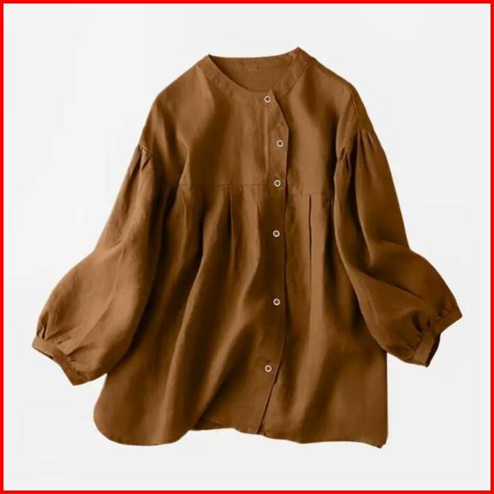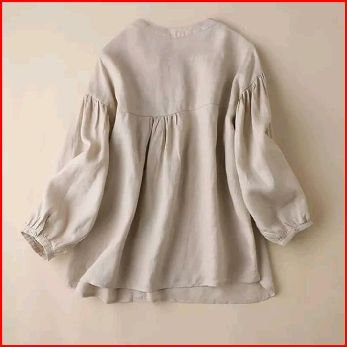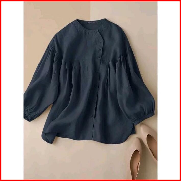 Ramia Blues Kemeja Korea Jumbo S M L Xl Xxl Xxxl 5l Katun Santai Wanita Kain Linen Nyaman Atasan Kancing Panjang Kerah O
