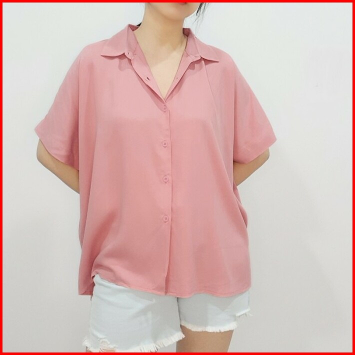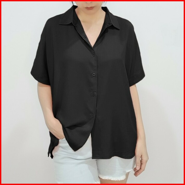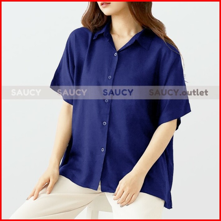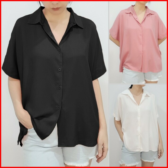 Kemeja Oversize Wanita Atasan Kerja Polos Casual Blouse