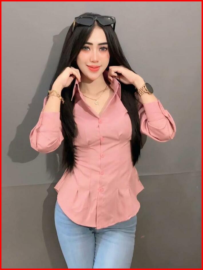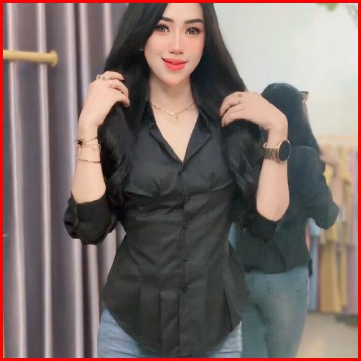 Erlesia Kemeja Wanita Slimfit Lengan Panjang Polos Karet Belakang