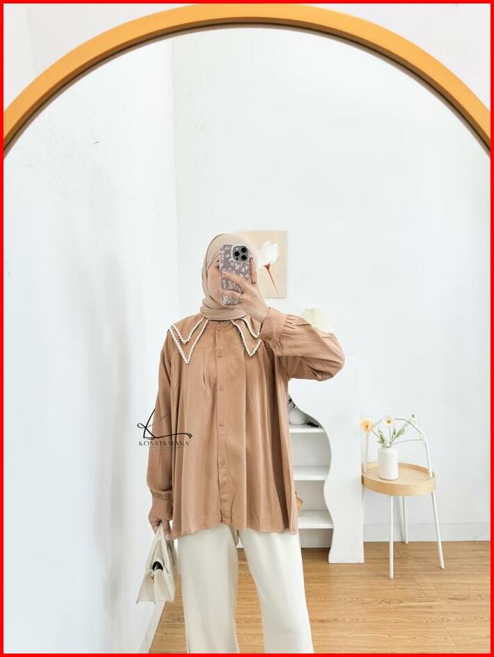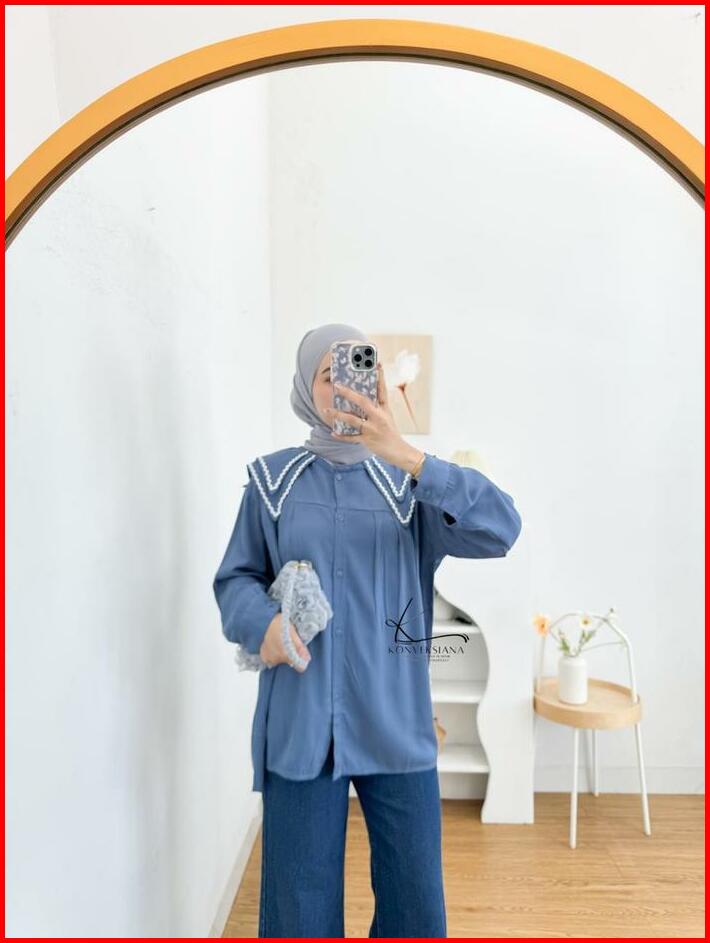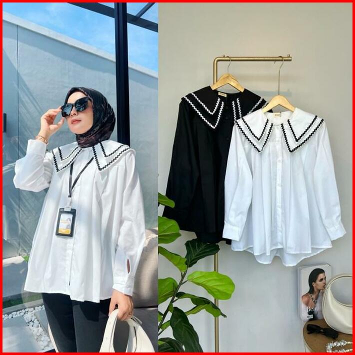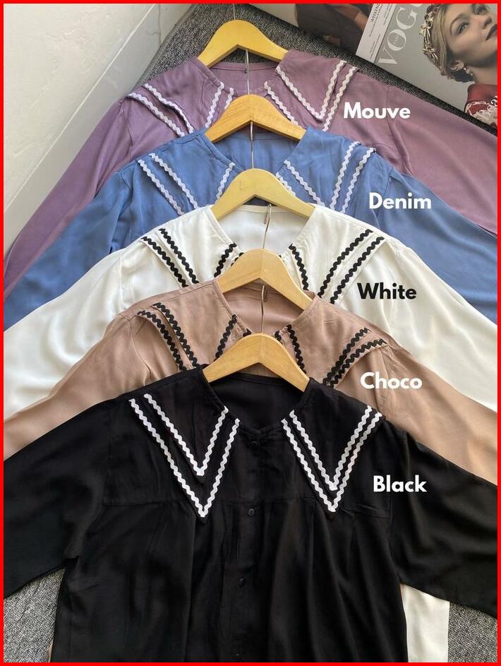 Gladys Kemeja Wanita Oversize Blouse Jumbo Rayon Twill Premium Atasan Kerah Sailor