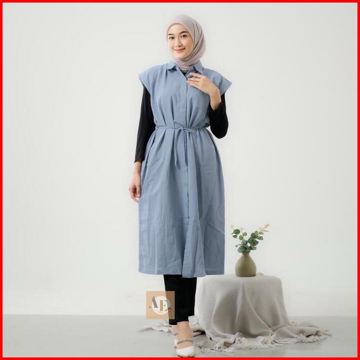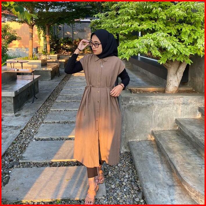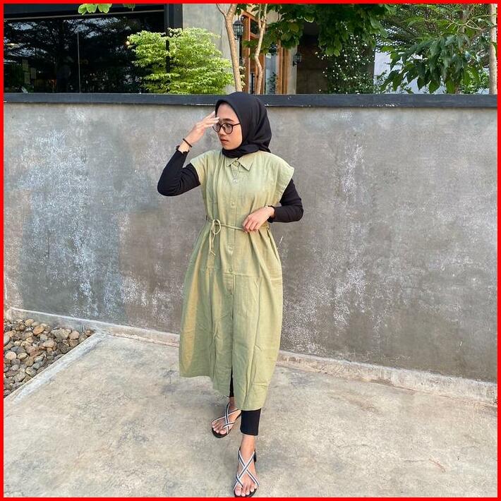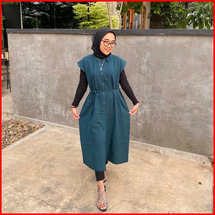 Hanum Overall Dress Outer Polos Jumpsuit Wanita Muslim Panjang Look Korean Style Linen Angel Full Kancing Busui Friendly