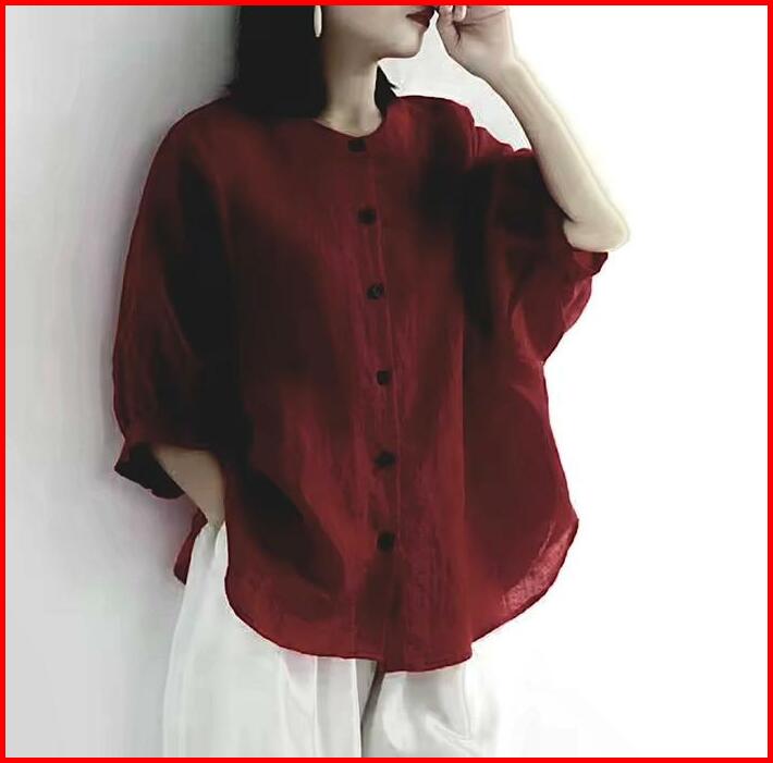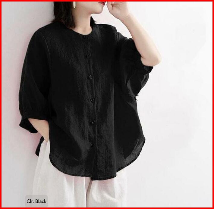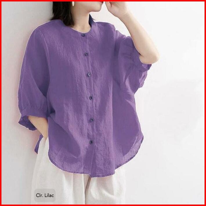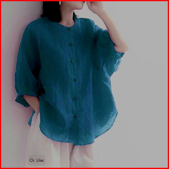 Kemeja Cewek Oversize Jumbo Kemeja Trend Kekinian Kemeja Fashion Wanita Blus Wanita Jumbo Muat Bb 45-85 Kg Kemeja 3 4 Li