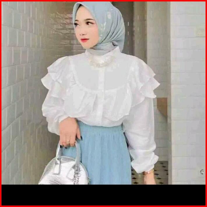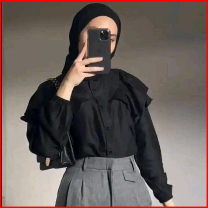 Rafella Blouses Ruffle Kemeja Wanita Atasan 2025 Kerah Sanghai Kain Polo Linen Terbaru Panjang Baju Kancing Variasi Over
