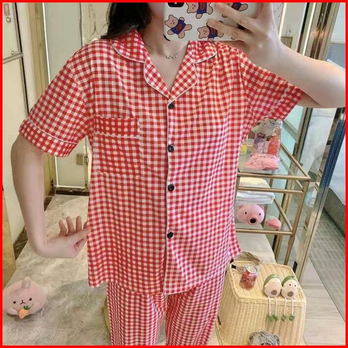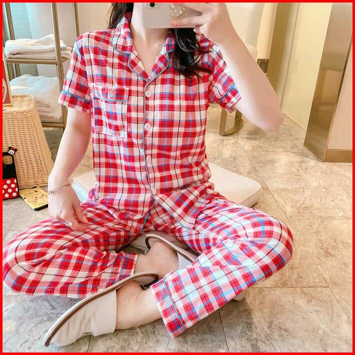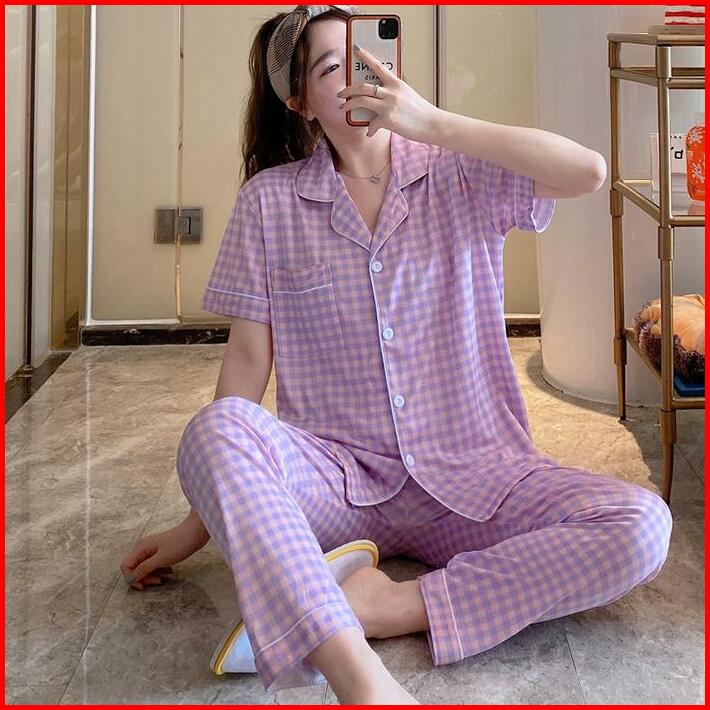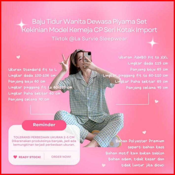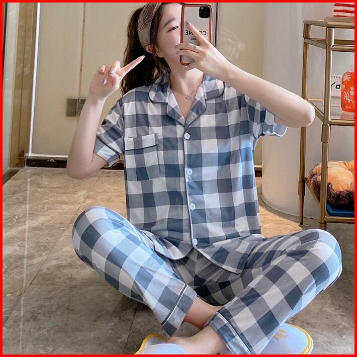 La Survie Baju Tidur Wanita Dewasa Piyama Set Kekinian Model Kemeja Cp Seri Kotak
