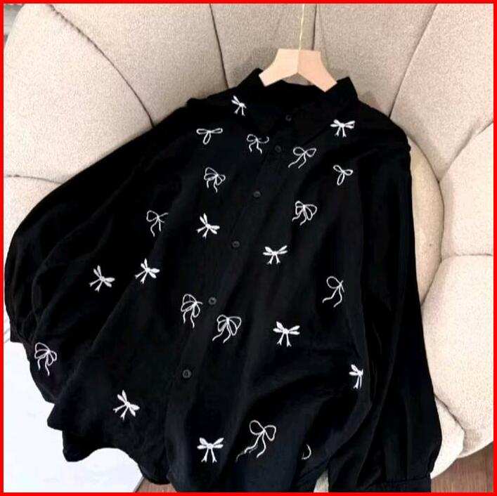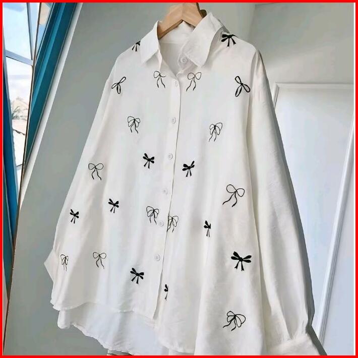 Blous Wanita Blouse Pita Bordir Coquentte Kemeja Wanita Overzise Pure Linen Premium