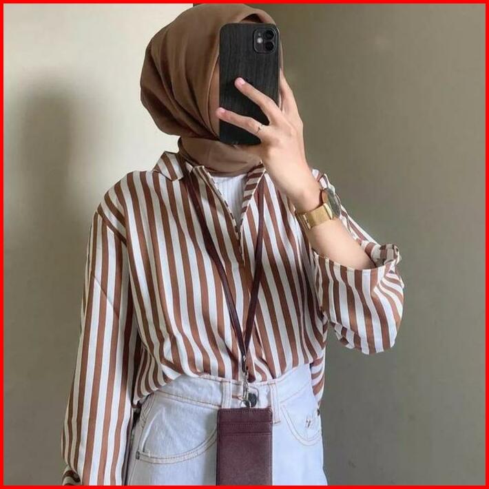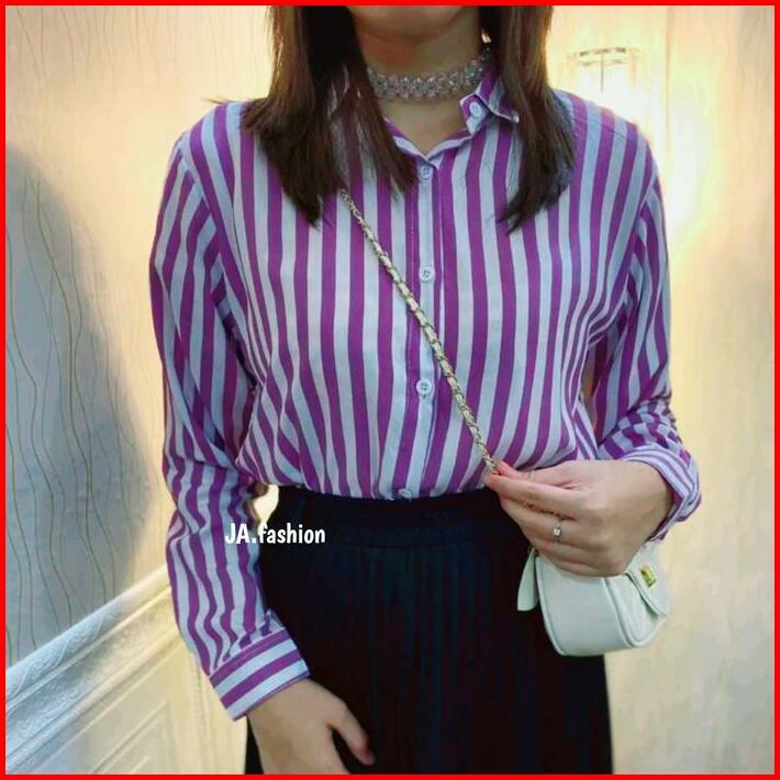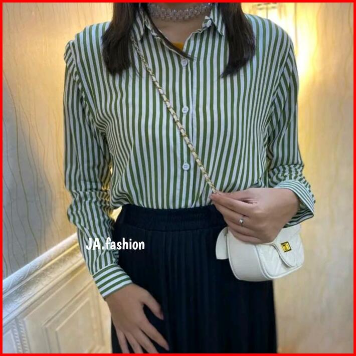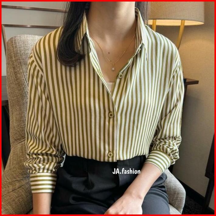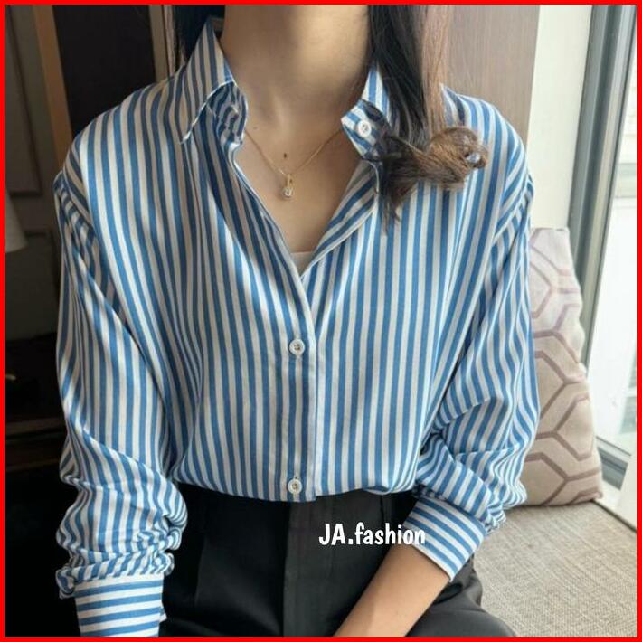 Kemeja Wanita Motif Salur Stripe Shirt Bahan Katun Rayon Nyaman Kemeja Formal Wanita Korean Style