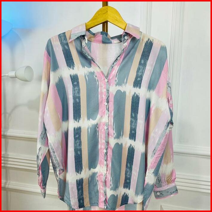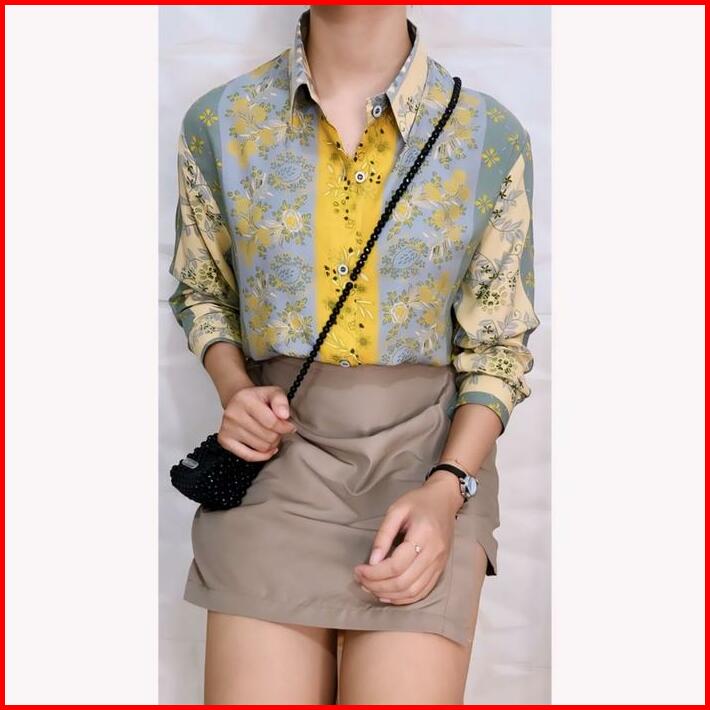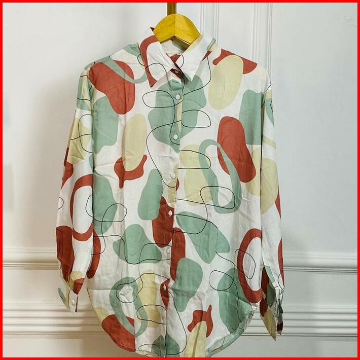 Cuci Gudang Kemeja Rayon Motif Wanita Exclusive Variasi 02 Oversize Baju Kancing Karet Panjang Katun Atasan Linen Casual
