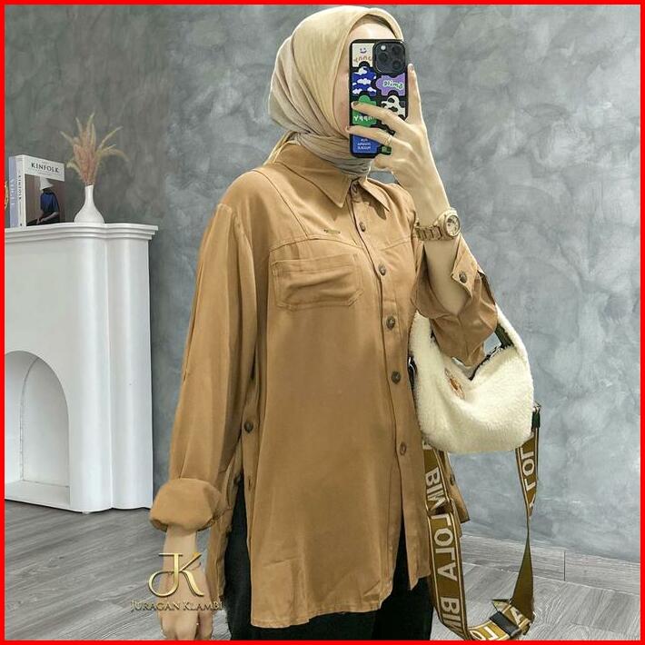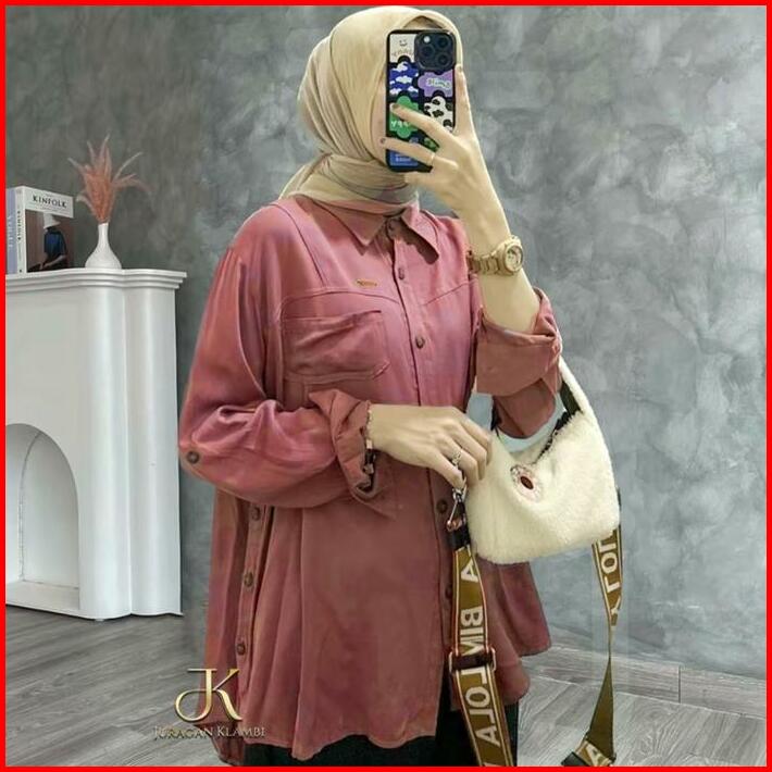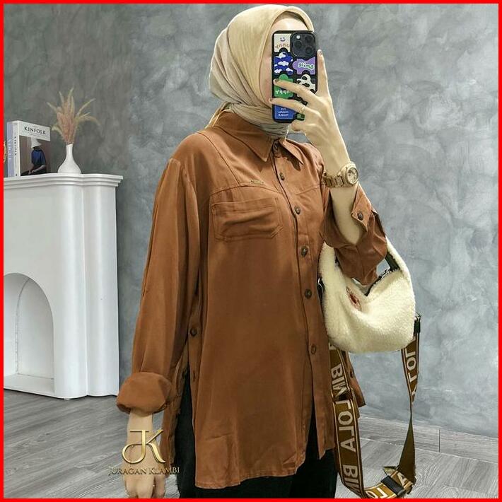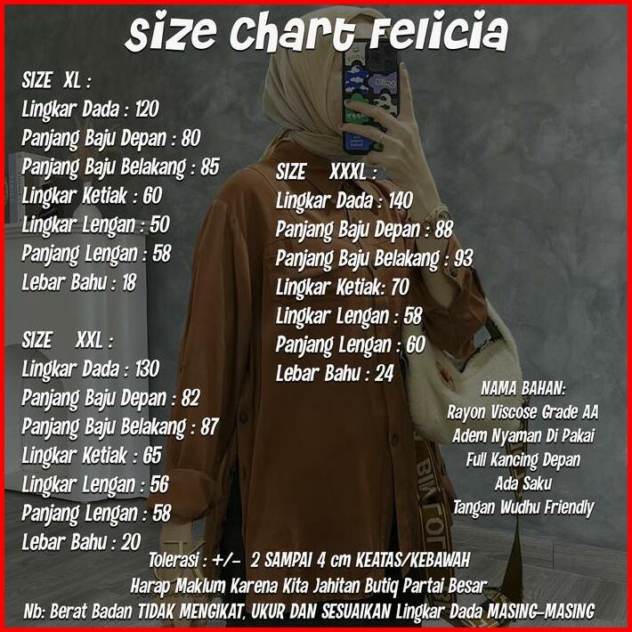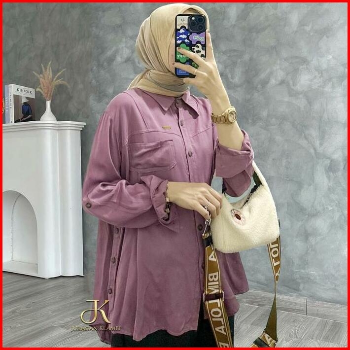 Felicia Oversize Blouse Kemeja Jumbo Rayon Viscose Adem Kancing Busui Free Bros Original Juragan Klambi Muslim Wanita