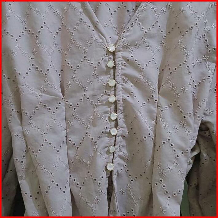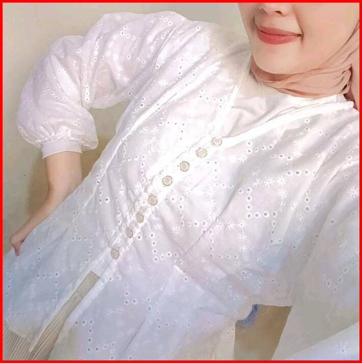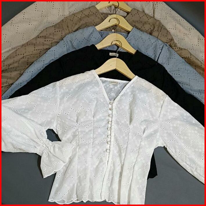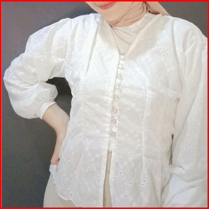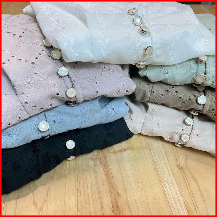 Blouse Atasan Katun Bordir Bolong Wanita Korea Formal Casual Hijab Friendly Blouse Kemeja Elegan Atasan Kantor Wanita Ba