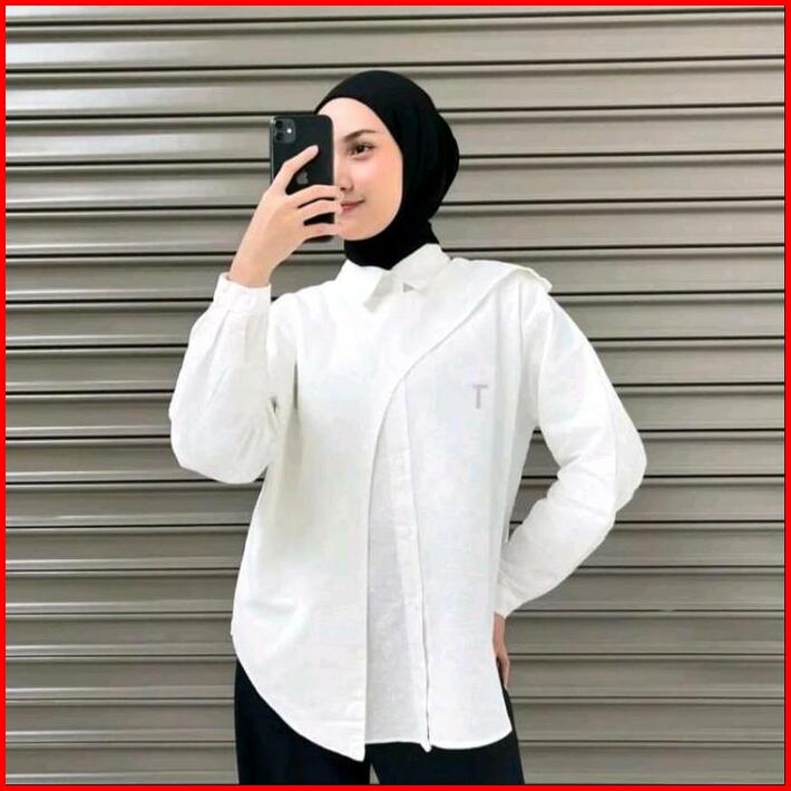 Kemeja Wanita Linen Oversize Kemeja Hawa Shirt Polos