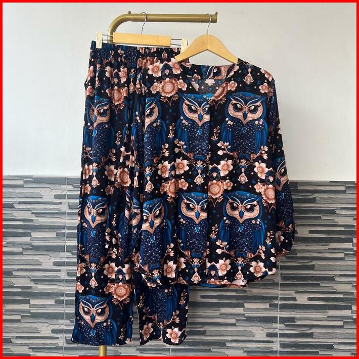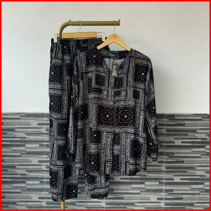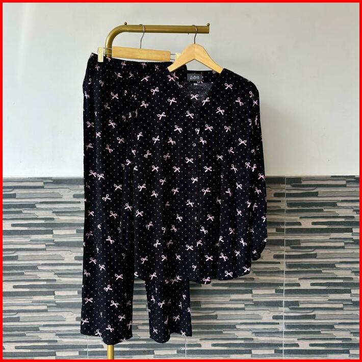 Setelan Bundling Baju Dan Celana One Set Wanita Panjang Rayon Premium Set Kemeja Vneck