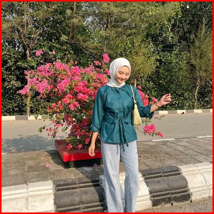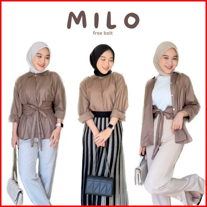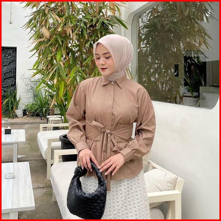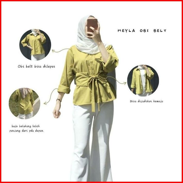 Meyla Blouse Kemeja Wanita Katun Free Oby Belt Atasan