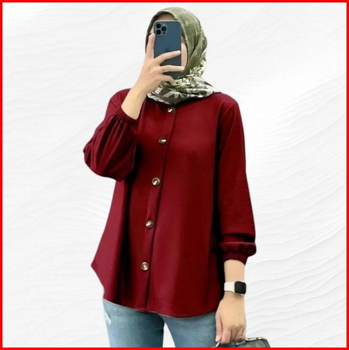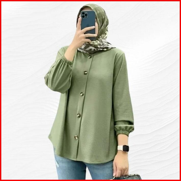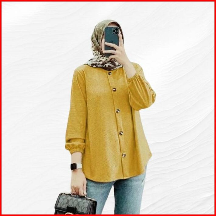 Kemeja Jumbo Ld120 105 Atasan Wanita Hijab Karina Blouse Kekinian Blus Tshirt Muslimah Bahan Cringkle Busui Friendly Ove