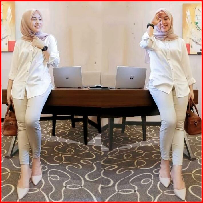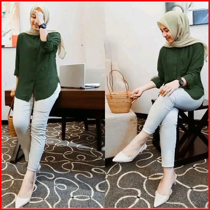 Kemeja Polos Wanita Lengan Panjang Bahan Rayon Twill Premium Terbaru Kain Lembut Tebal Full Kancing Depan Cocock Pemakai