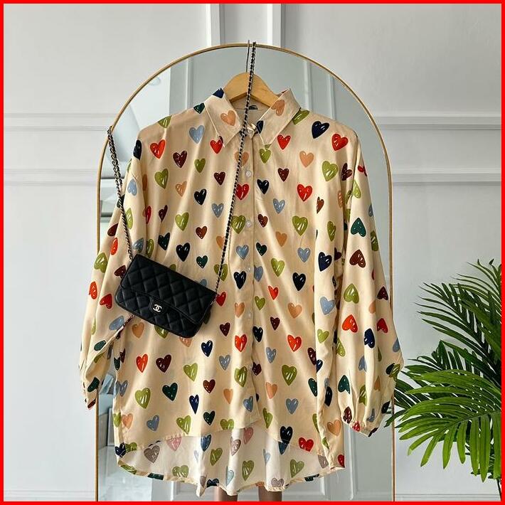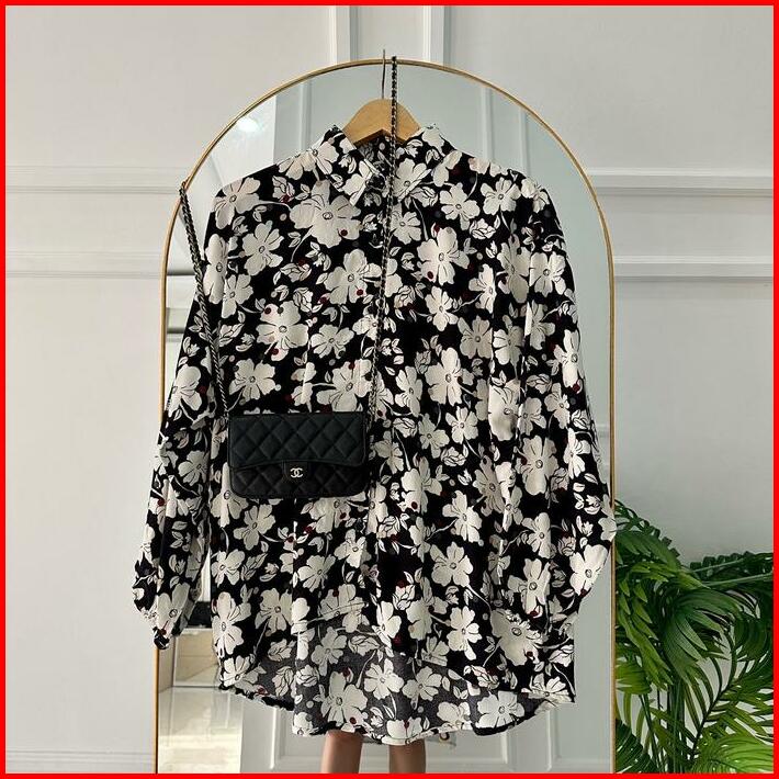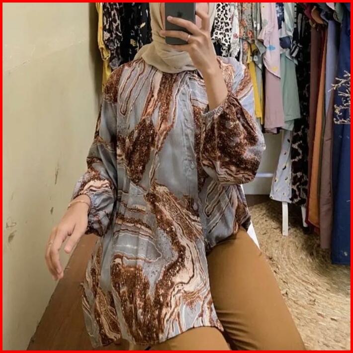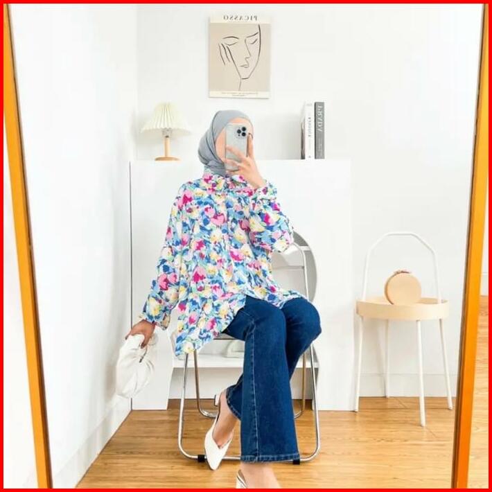 Kemeja Wanita Blouse Rayon Motif Oversize Hijab Friendly