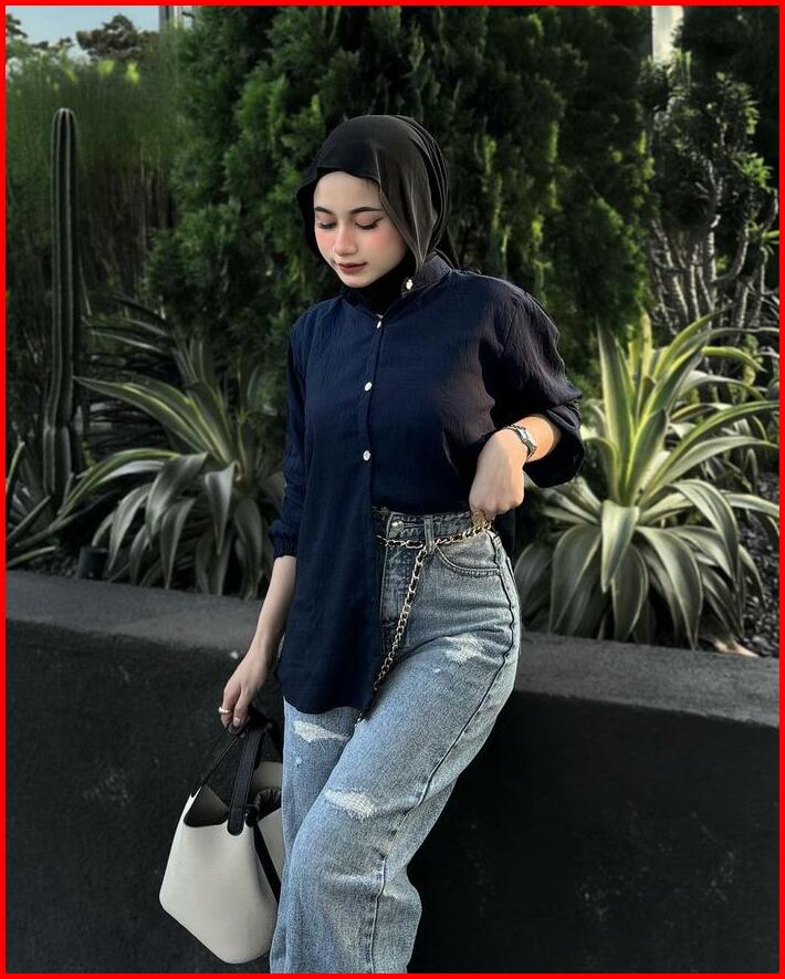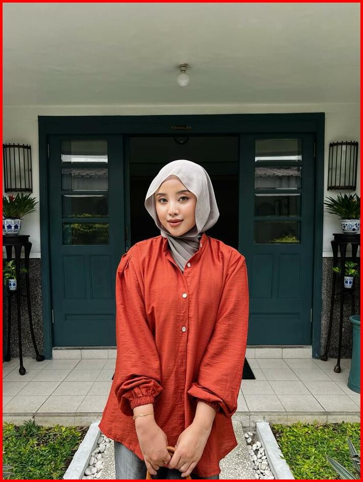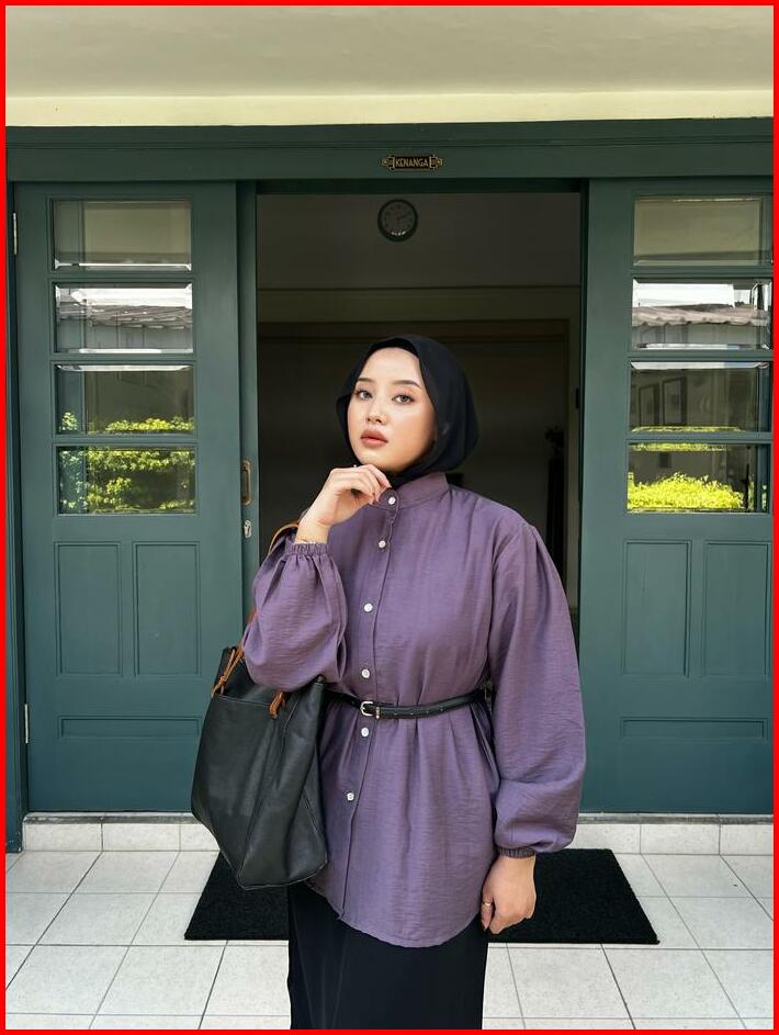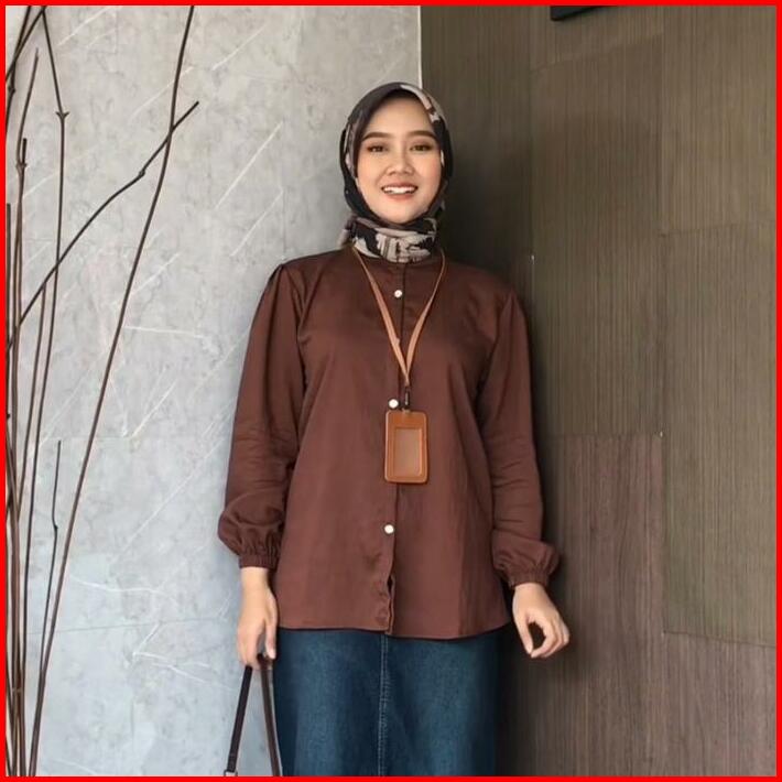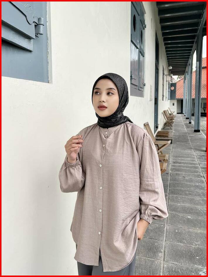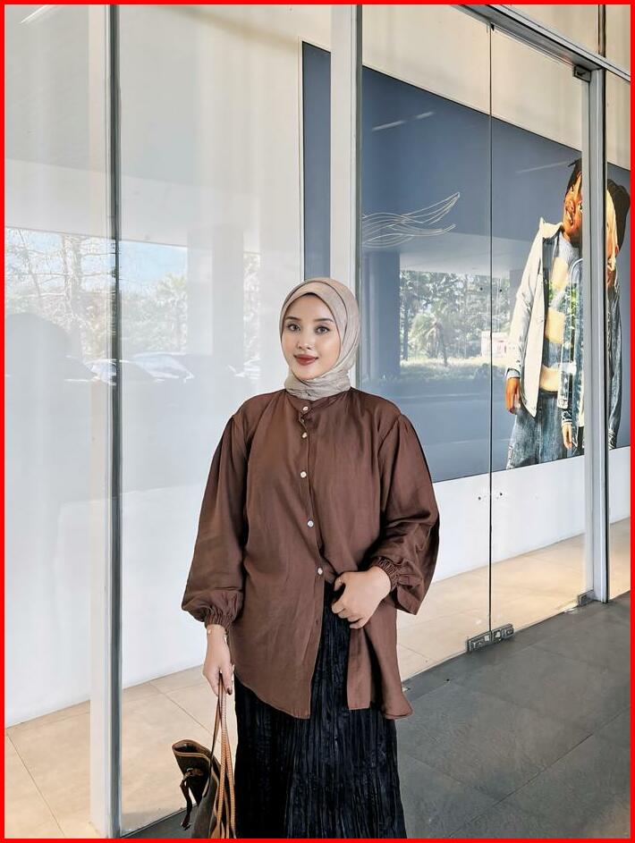 Maudy Shirt Kemeja Basic Atasan Wanita Linen Lengan Panjang Balon