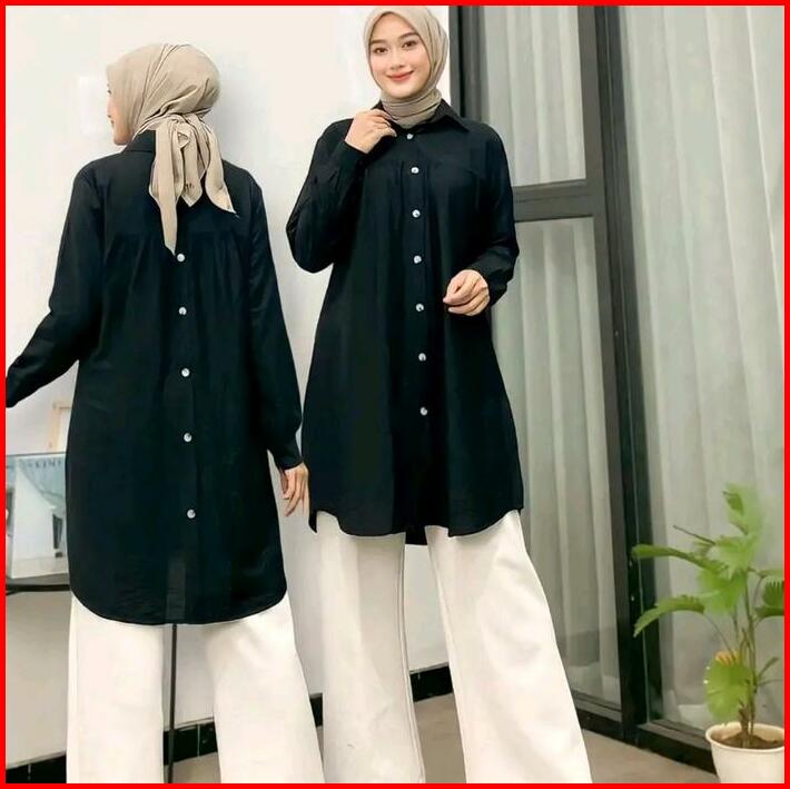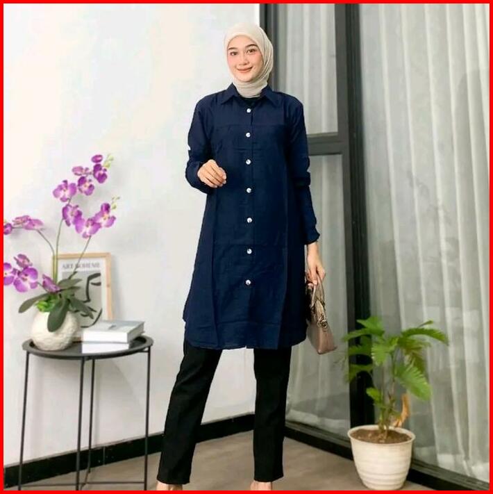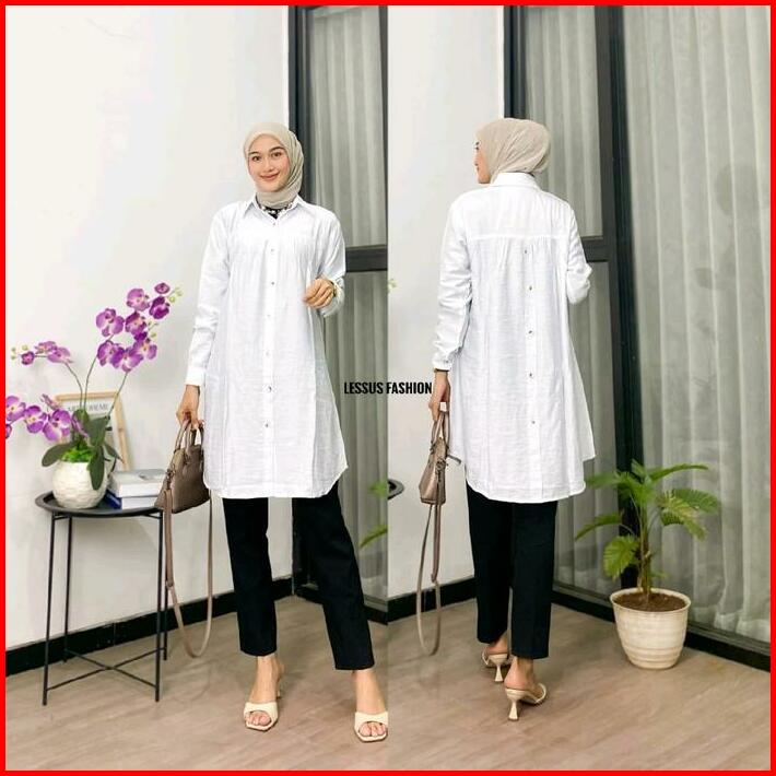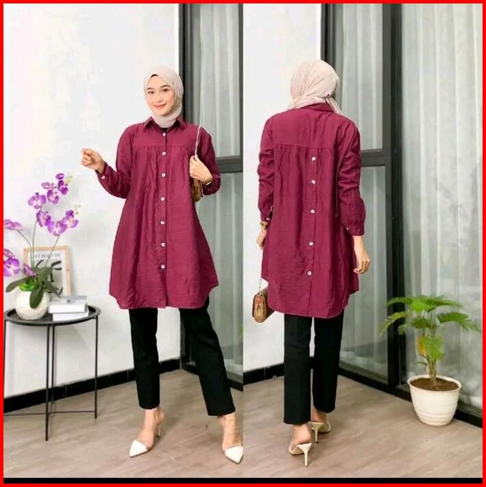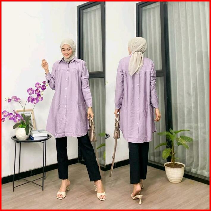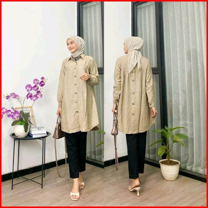 Zella Tunik Polos Polo Linen Kancing Depan Belakang Kemeja Wanita Polos Tunik Pololinen Muslim Wudhu Tunik Panjang Simpl