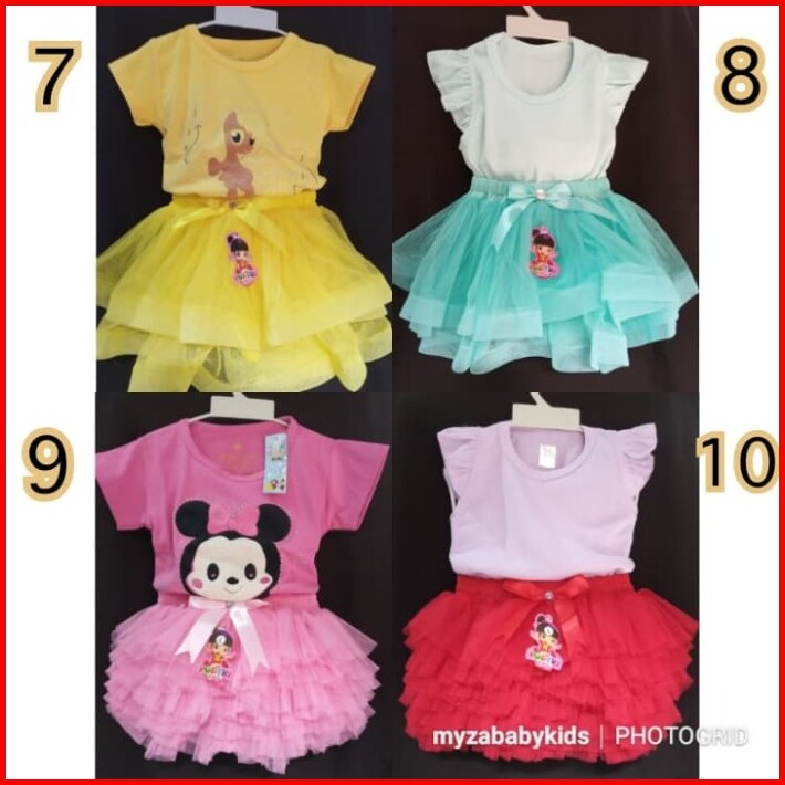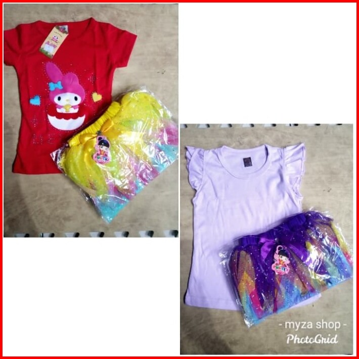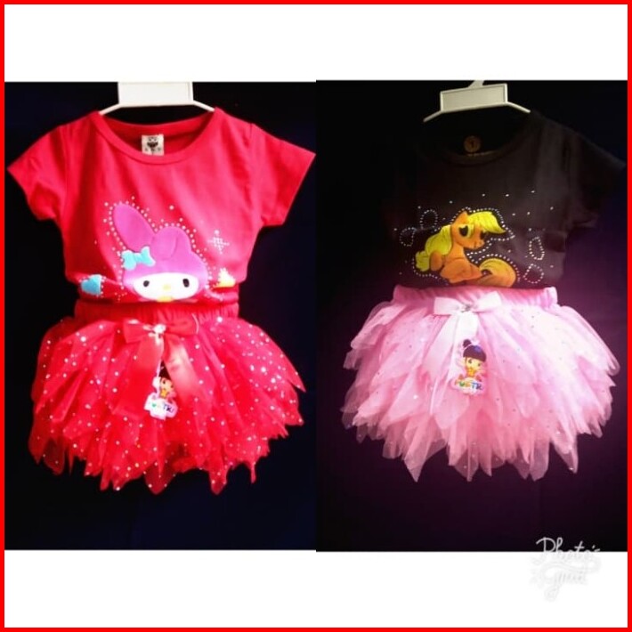 Dress Baju Pesta Setelan Tutu Dan Kaos Bayi Anak Perempuan 1-2 Y