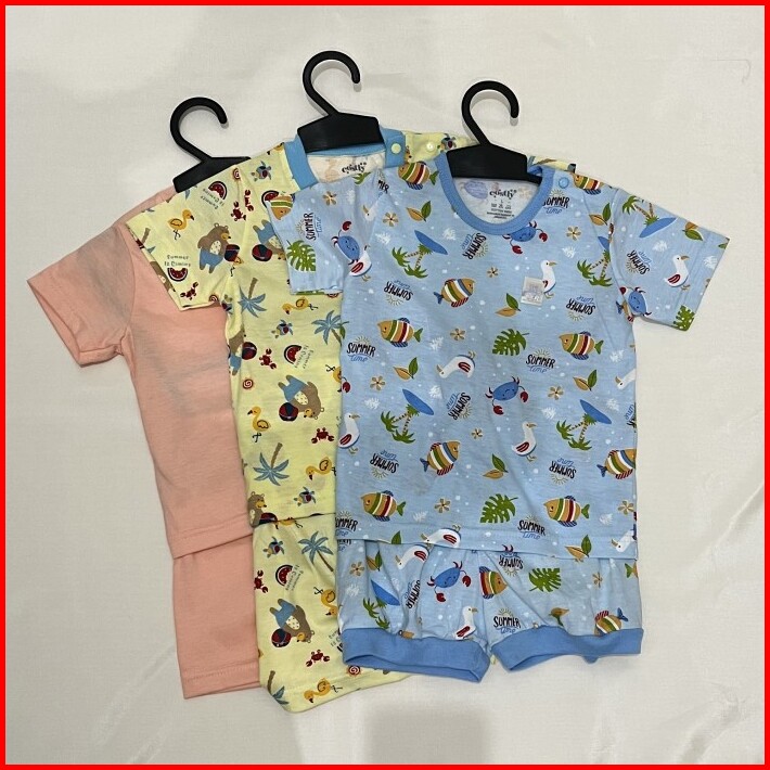 1 Stelan Short Playset Baju Bayi Dan Baju Anak Katun Kualitas Ekspor
