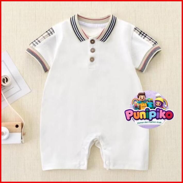 Baju Bayi Laki-laki Usia 0-12 Bulan Model Romper Kerah Bahan Katun Lembut Jumper Anak Cowok Kancing