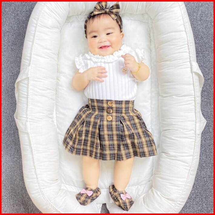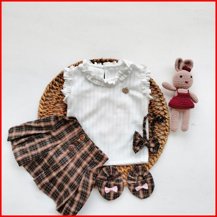 Baju Anak Bayi Perempuan Setelan Rok Knit Tartan Skirt Set Sepatu