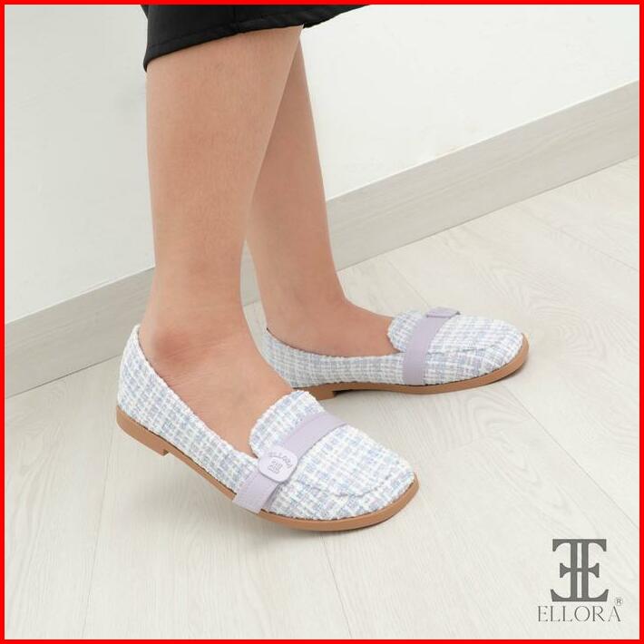 Ellora Eg-2213 Sepatu Flatshoes Wanita Import Bahan Tweed