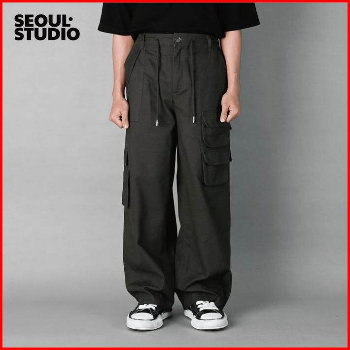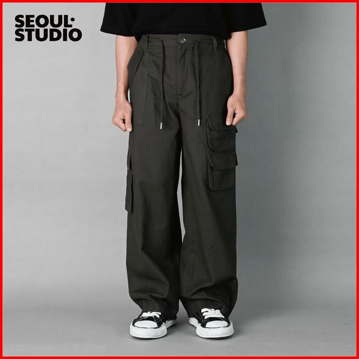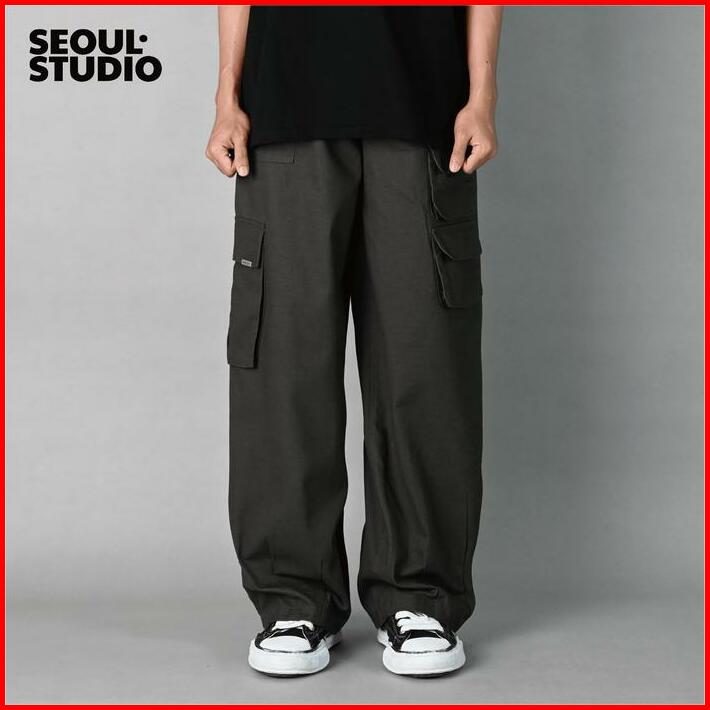 Seoulstudio Busan Dark Grey Cargo Pants Wide Baggy Loose Fit Celana Panjang Long Cotton Twill Tebal Pria Wanita Jeans Ca