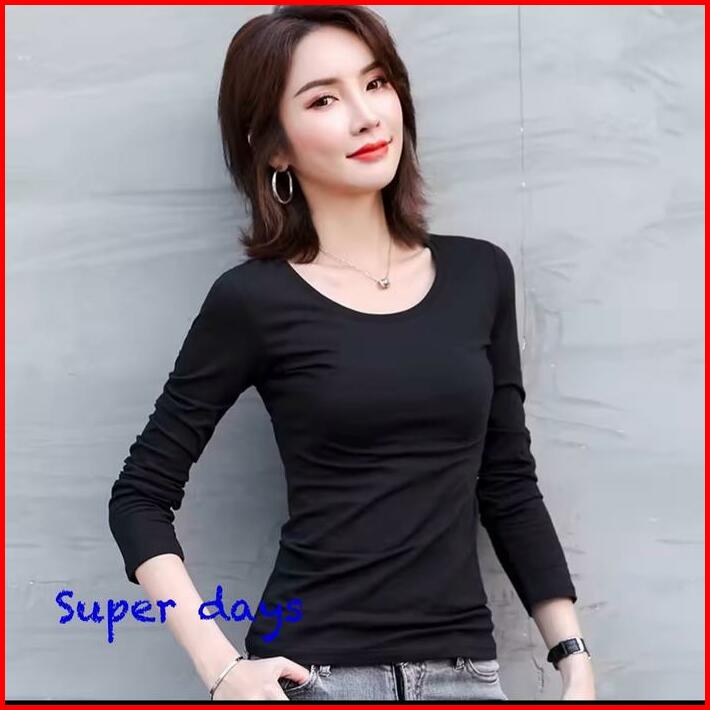 2 Pcs Manset Baju Kerah Oblong Lengan Panjang Manset Lengan Panjang Atasan Wanita Polos Kaos Cewek Katun Dewasa