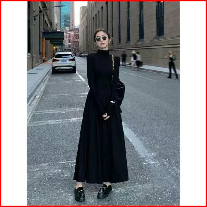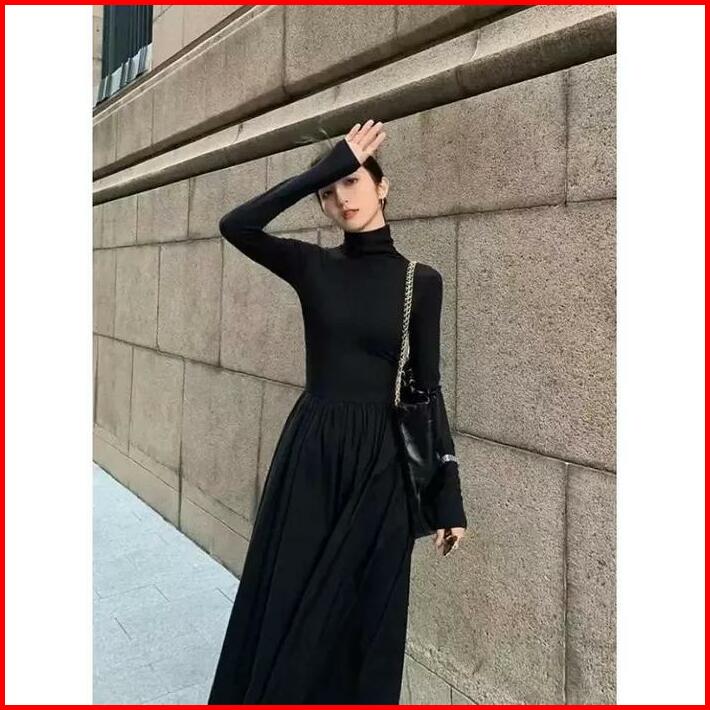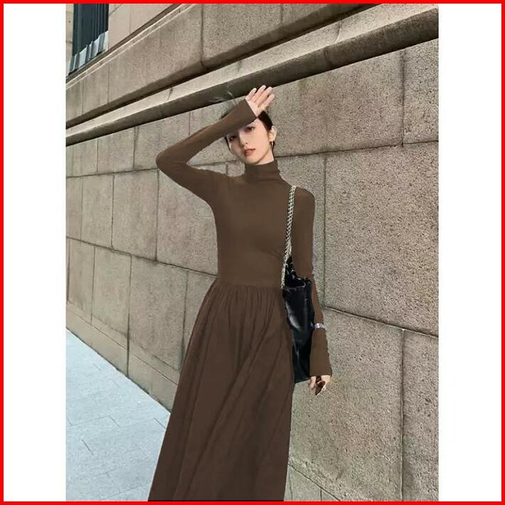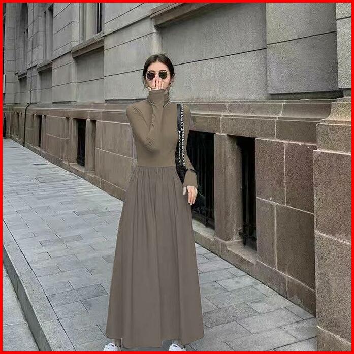 Turtle Neck Long Sleeve Plain Maxi A-line Dress 1791 S M L Xl
