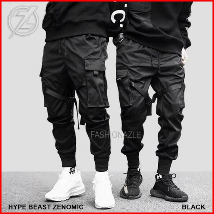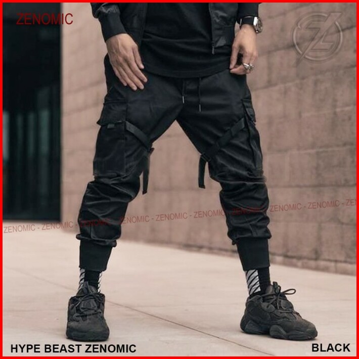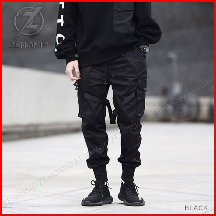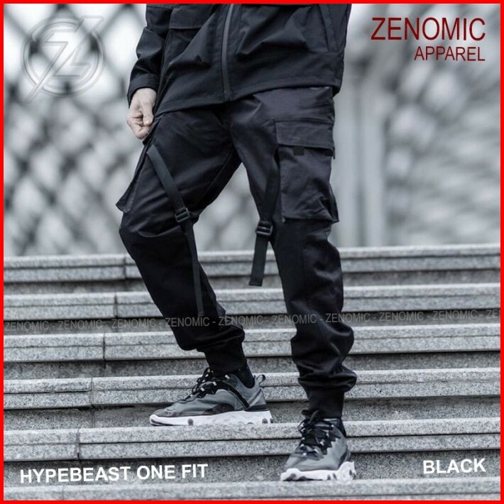 Celana Cargo Jogger Pants Pria Hypebeast Zenomic Black One Fit Murah