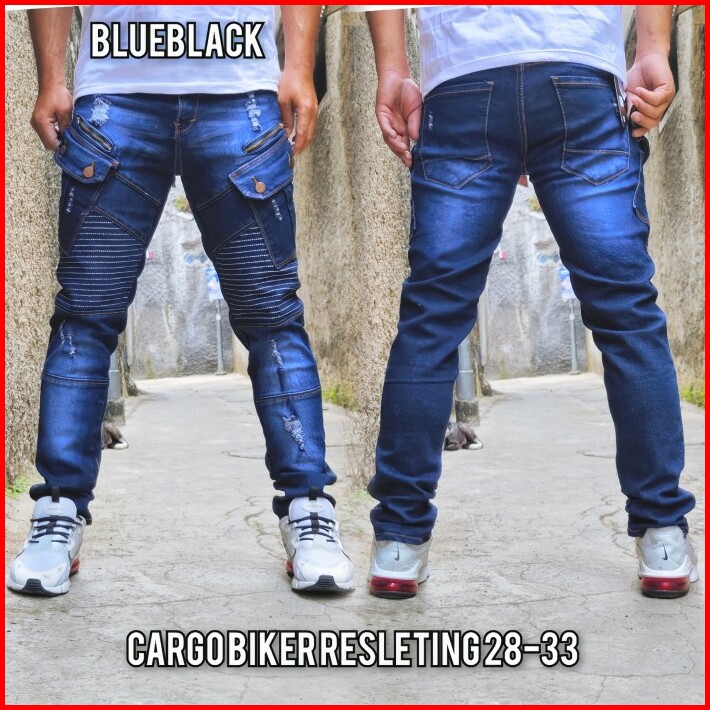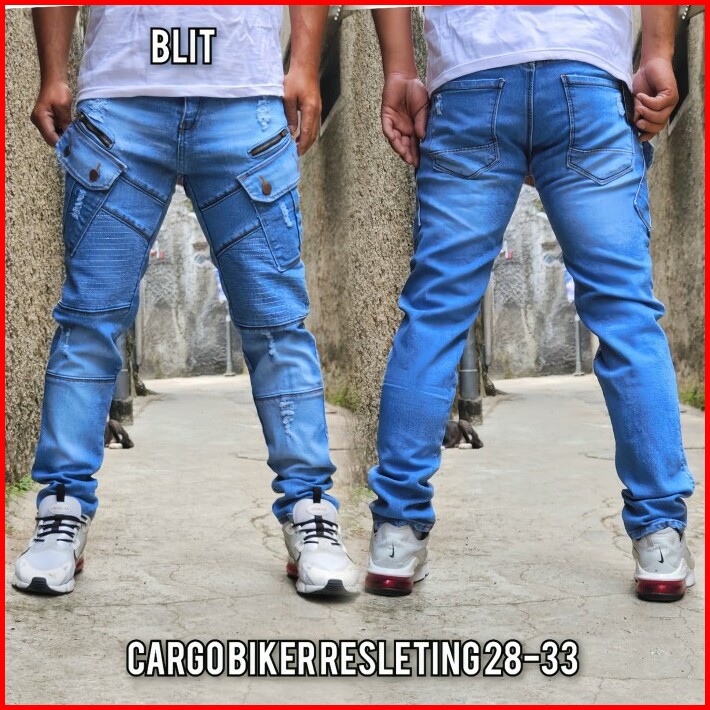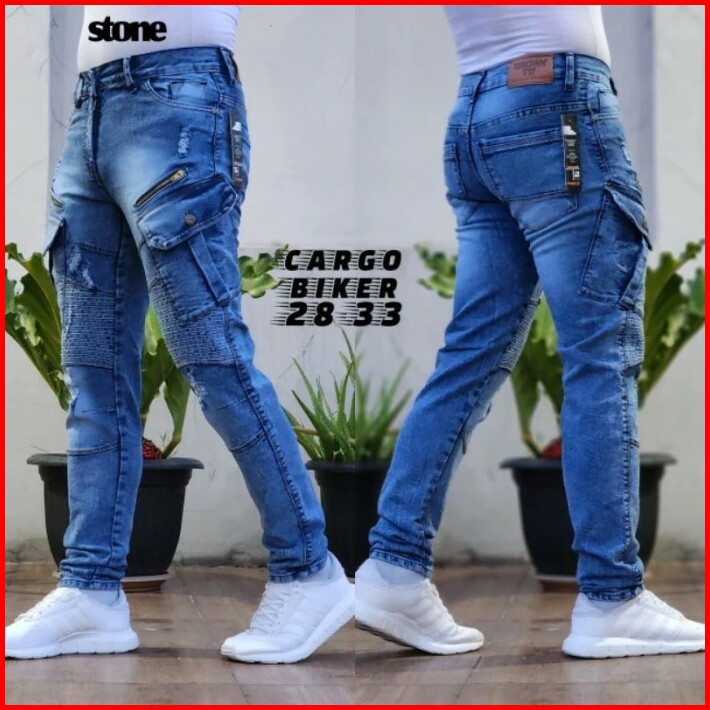 Celana Panjang Pria Cargo Jeans Bikers Ripped Sobek Streach Slimfit