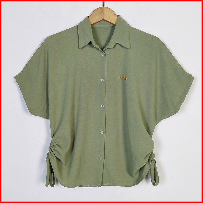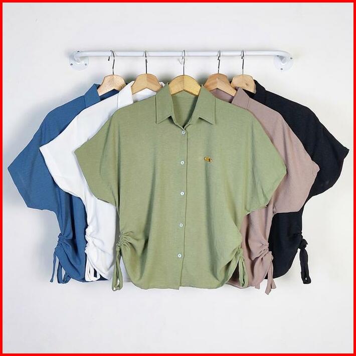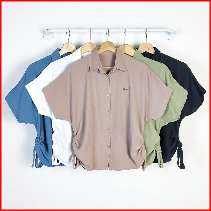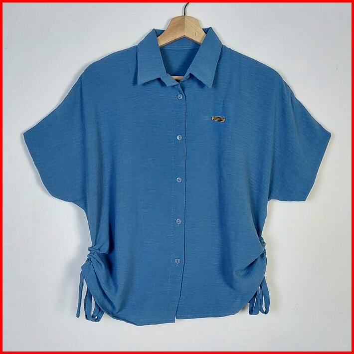 Kemeja Wanita Casual Lengan Pendek Crinkle Airflow Karet Samping Baju Atasan Oversize
