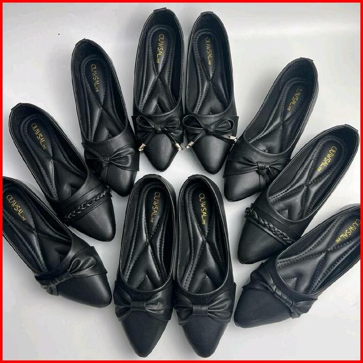 Ciuwsal Sepatu Wanita Flatshoes Flatshoes Wanita Empuk Sol Karet Kerja Hitam