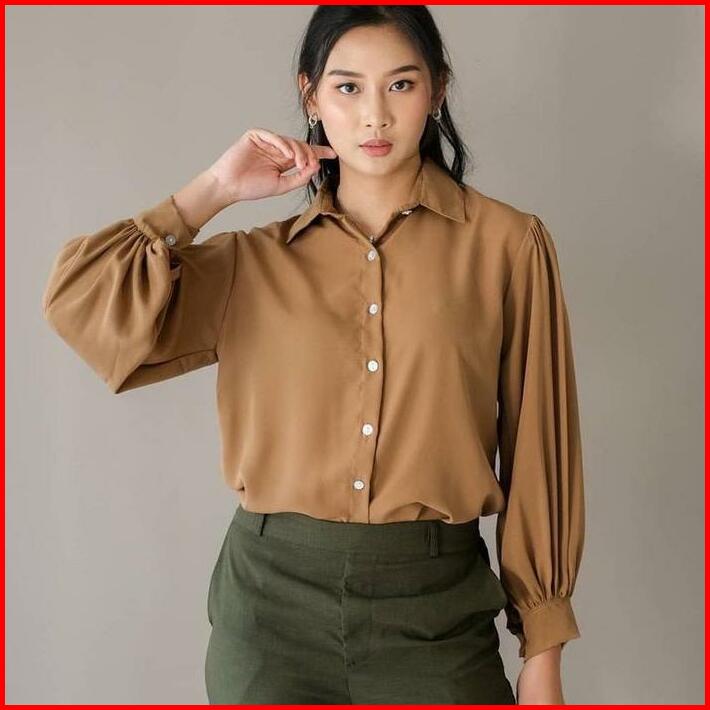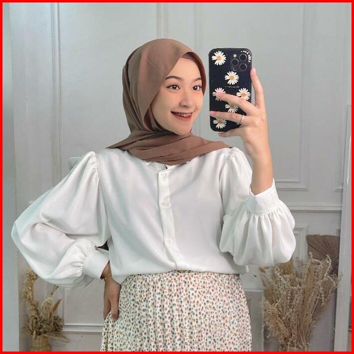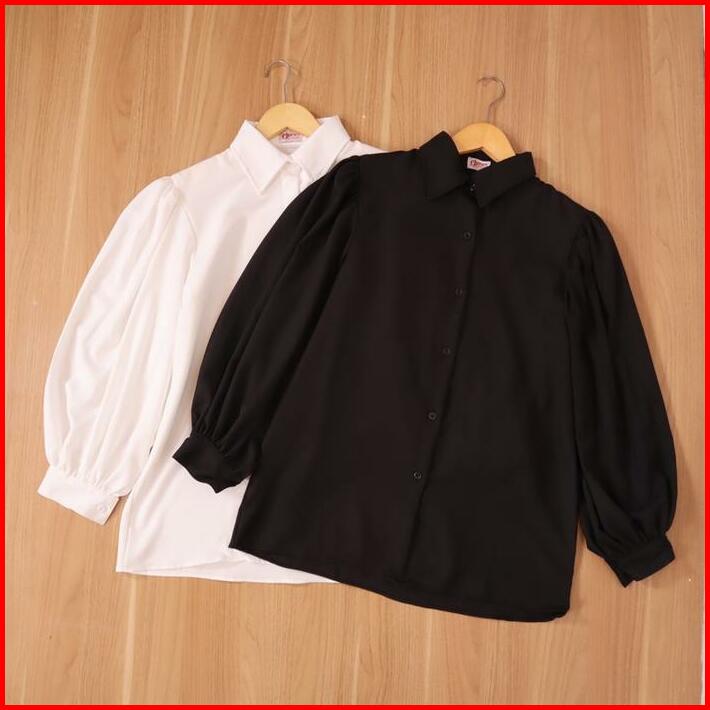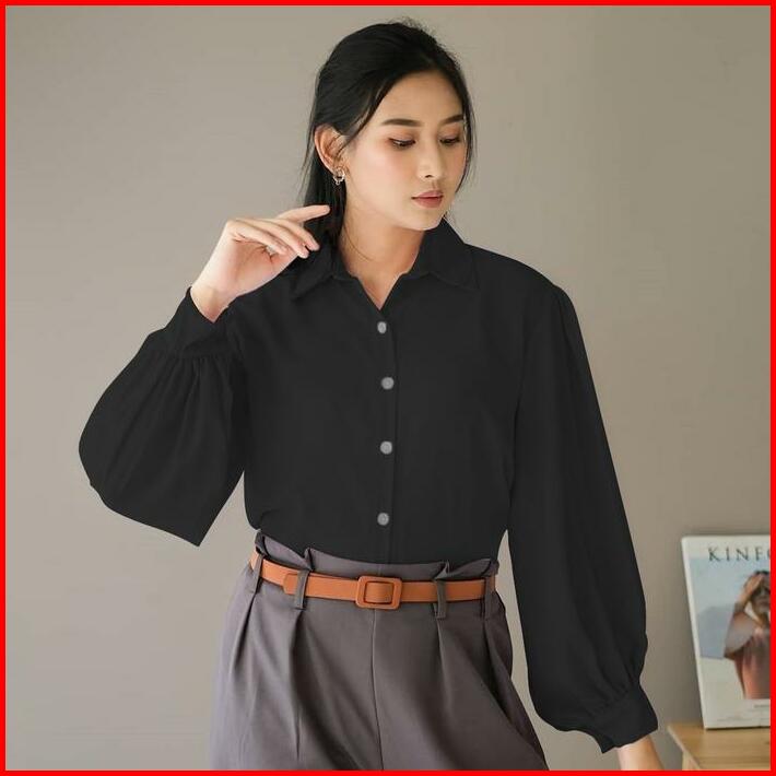 Atasan Wanita Lengan Panjang Kemeja Kantor Wanita Kemeja Putih Hitam Kemeja Audrey Lengan Ballon Kemeja Viral