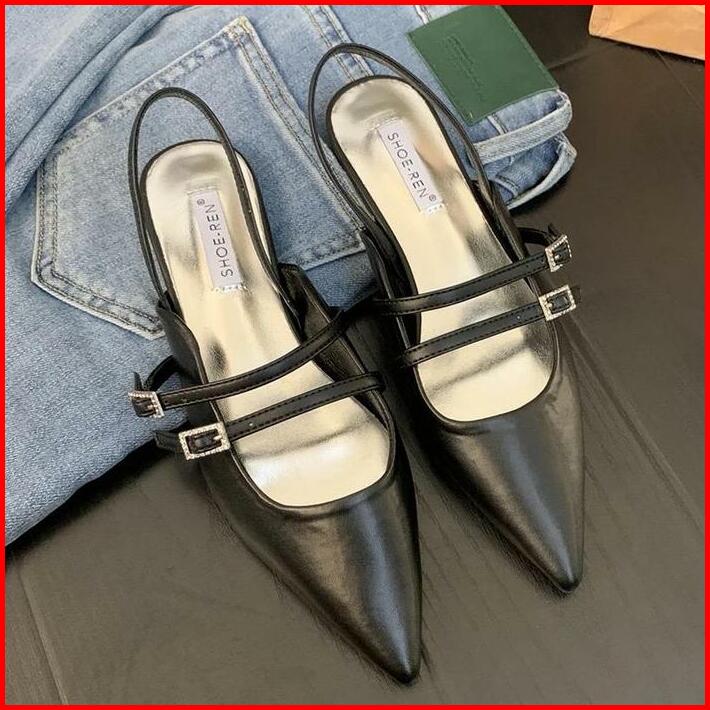 Sepatu Wanita Flatshoes Karet Cha Caa Expand Glossy Dengan Gesper Elegan Tabi Flat